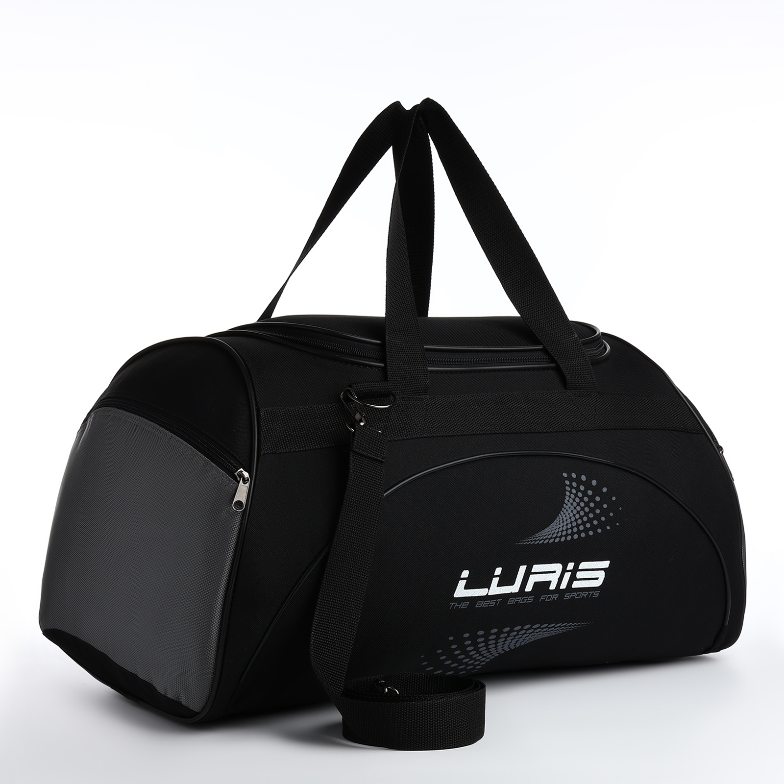 Сумка спортивная, на молнии, 2 наружных кармана, длинный ремень, средний размер, цвет чёрный/серый