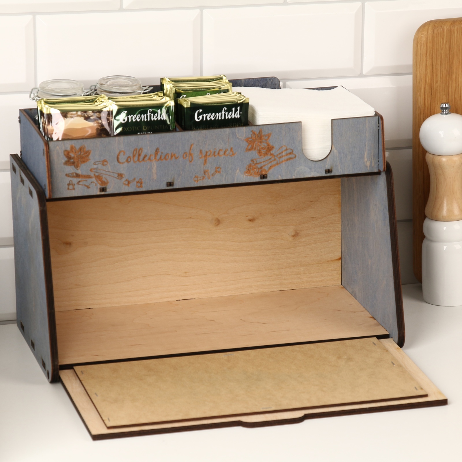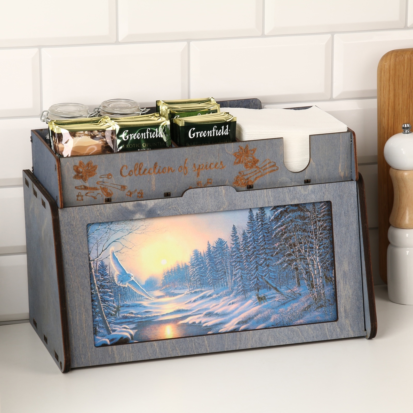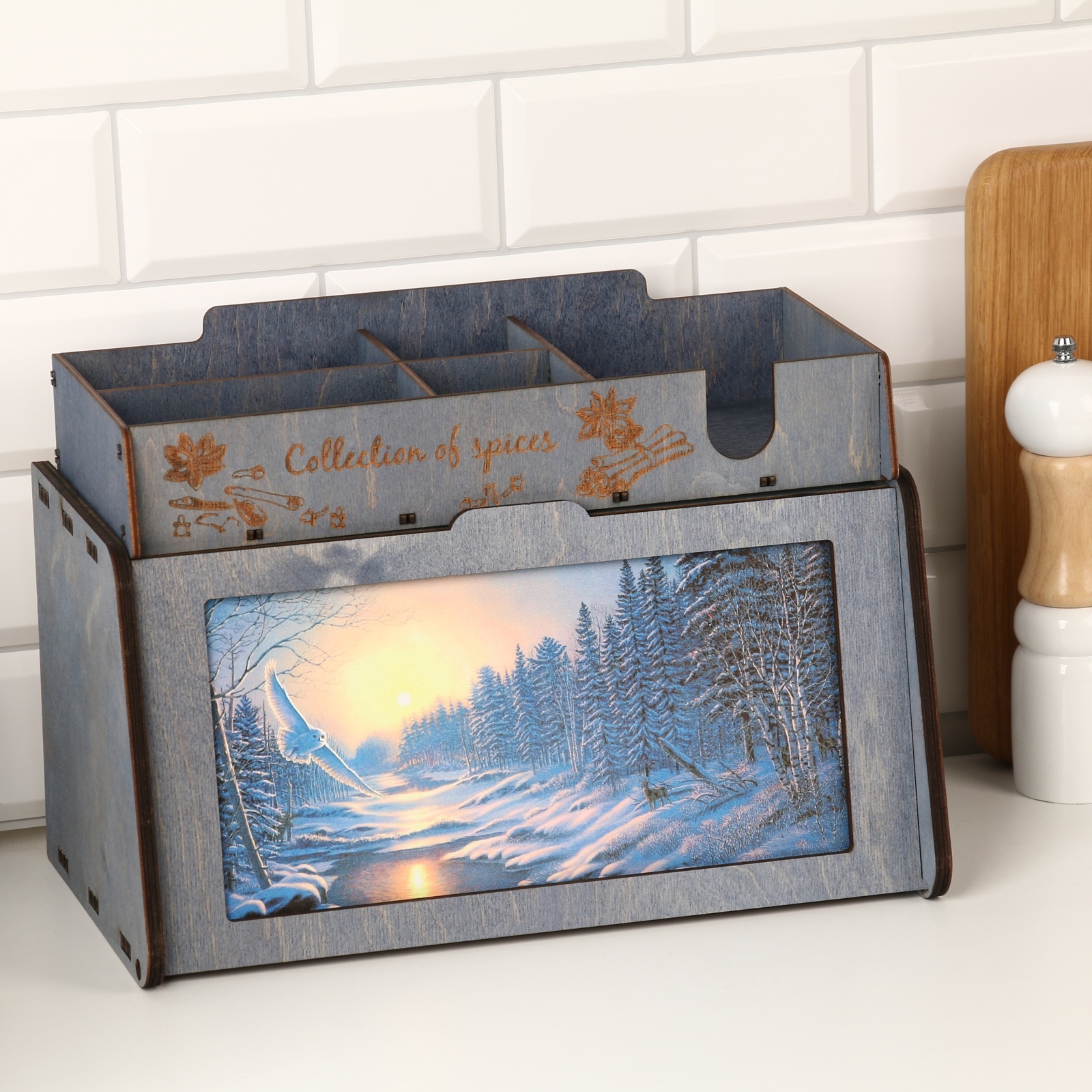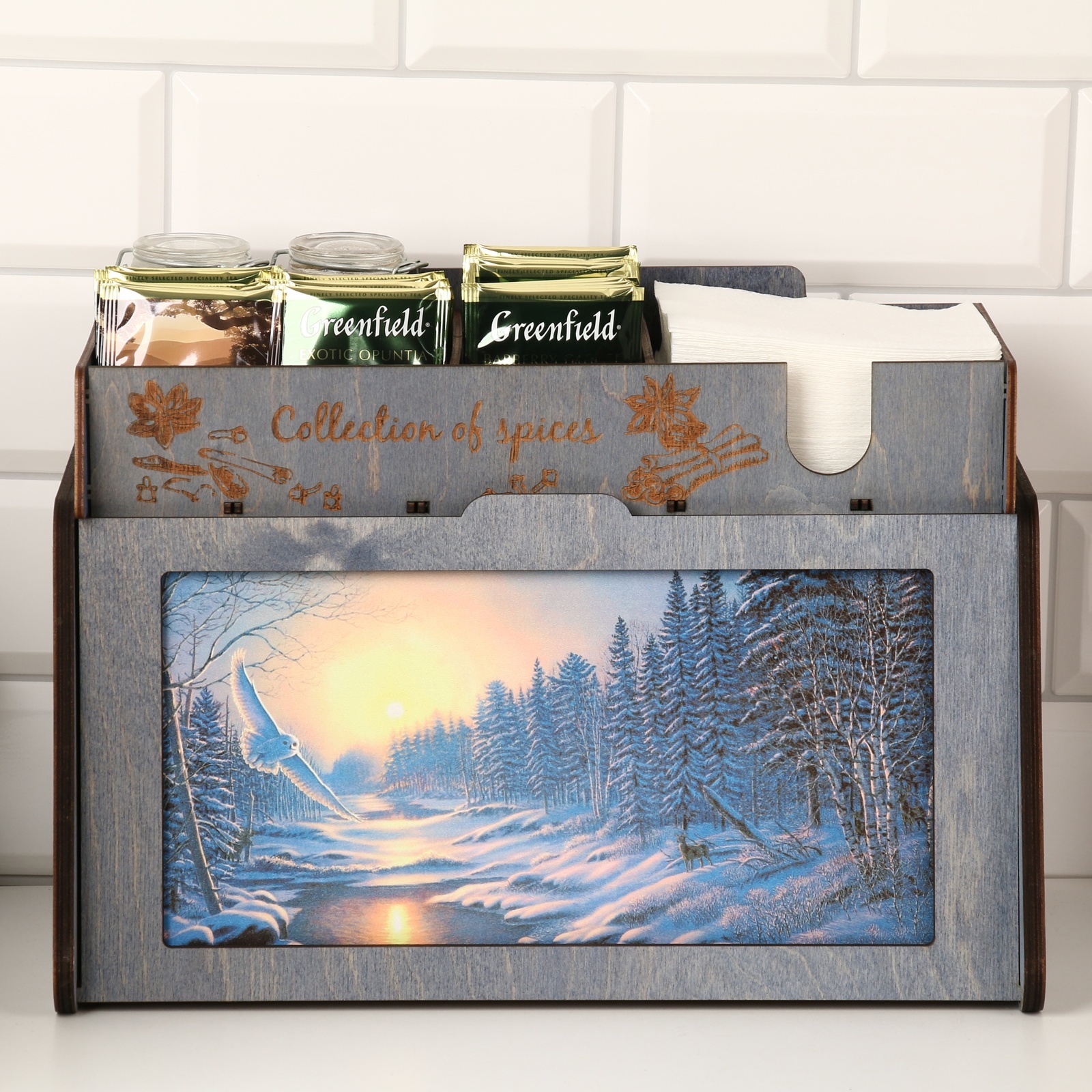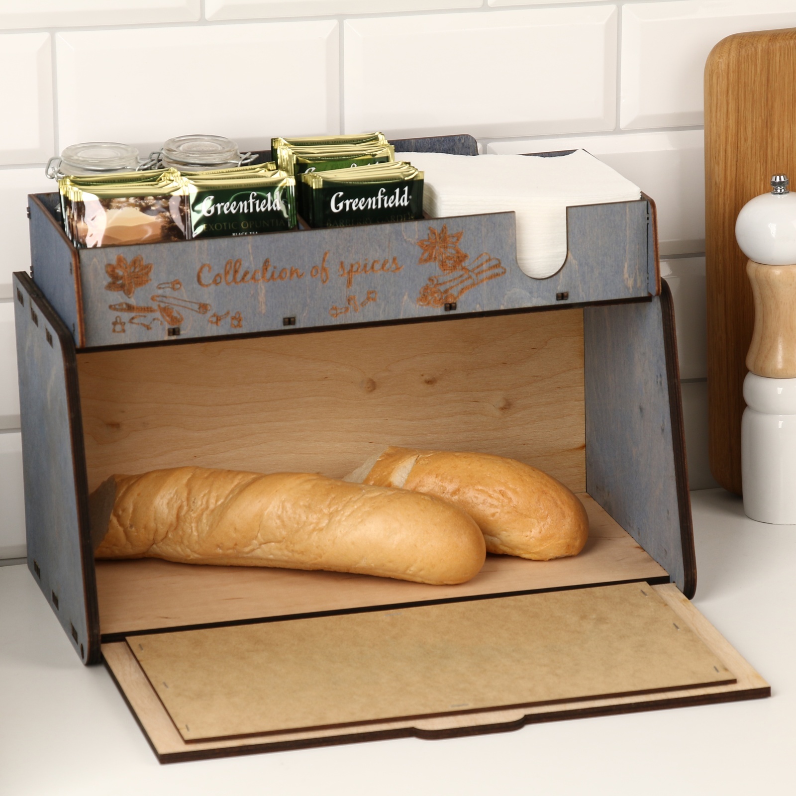 Хлебница деревянная с подставкой под специи "пейзаж", 35,6 х 20,4 х 24,8см, венге