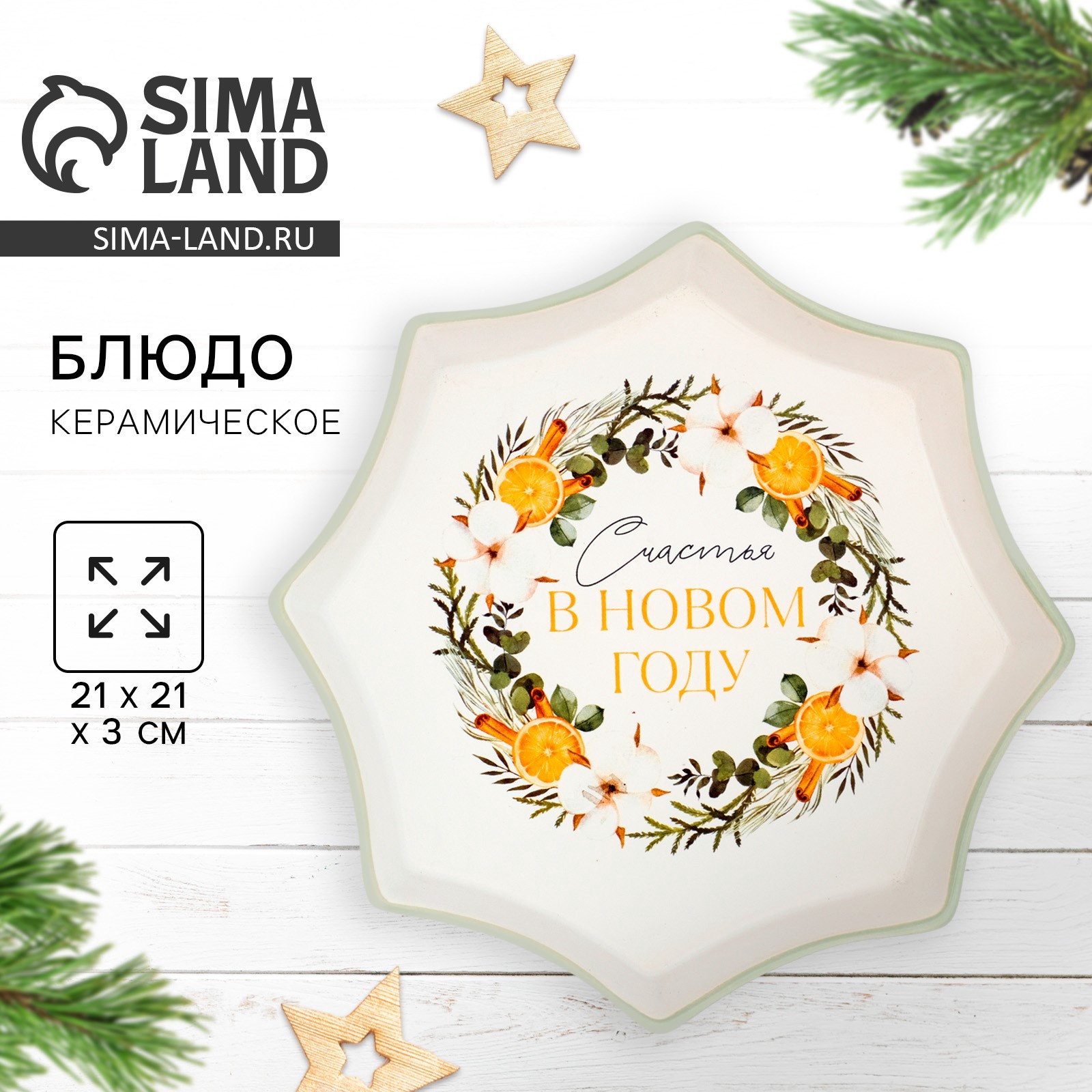 Новый год. блюдо керамическое «счастья в новом году», 21 х 21 х 3 см
