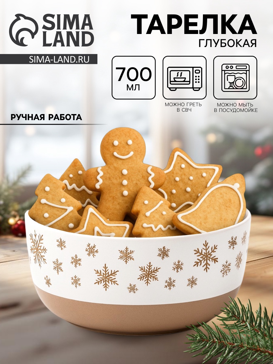 Тарелка суповая новогодняя «снежная сказка», 15 7 см, 700 мл, ручная работа