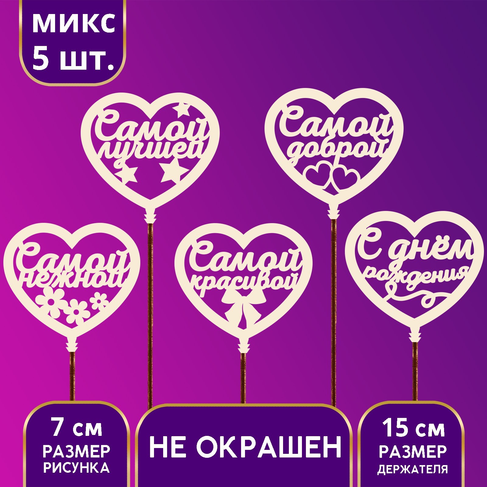 Топпер для торта «с днём рождения», женский, ассорти