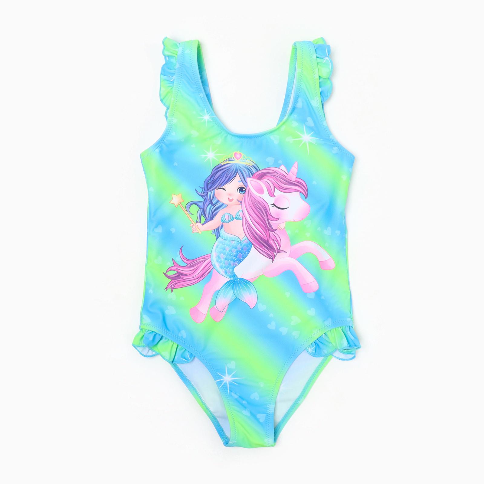 Купальник слитный для девочек, цвет голубой, рост 116-122 см.