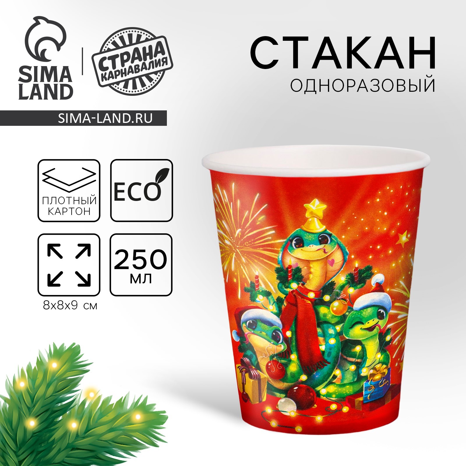 Стакан бумажный "с новым годом", змея ёлочка, 250 мл