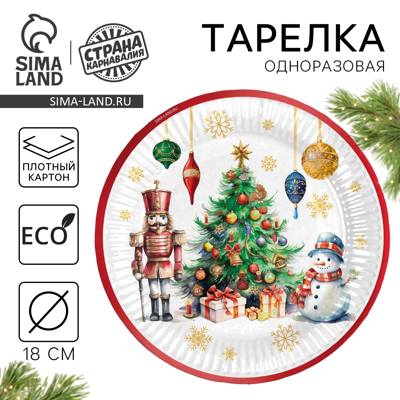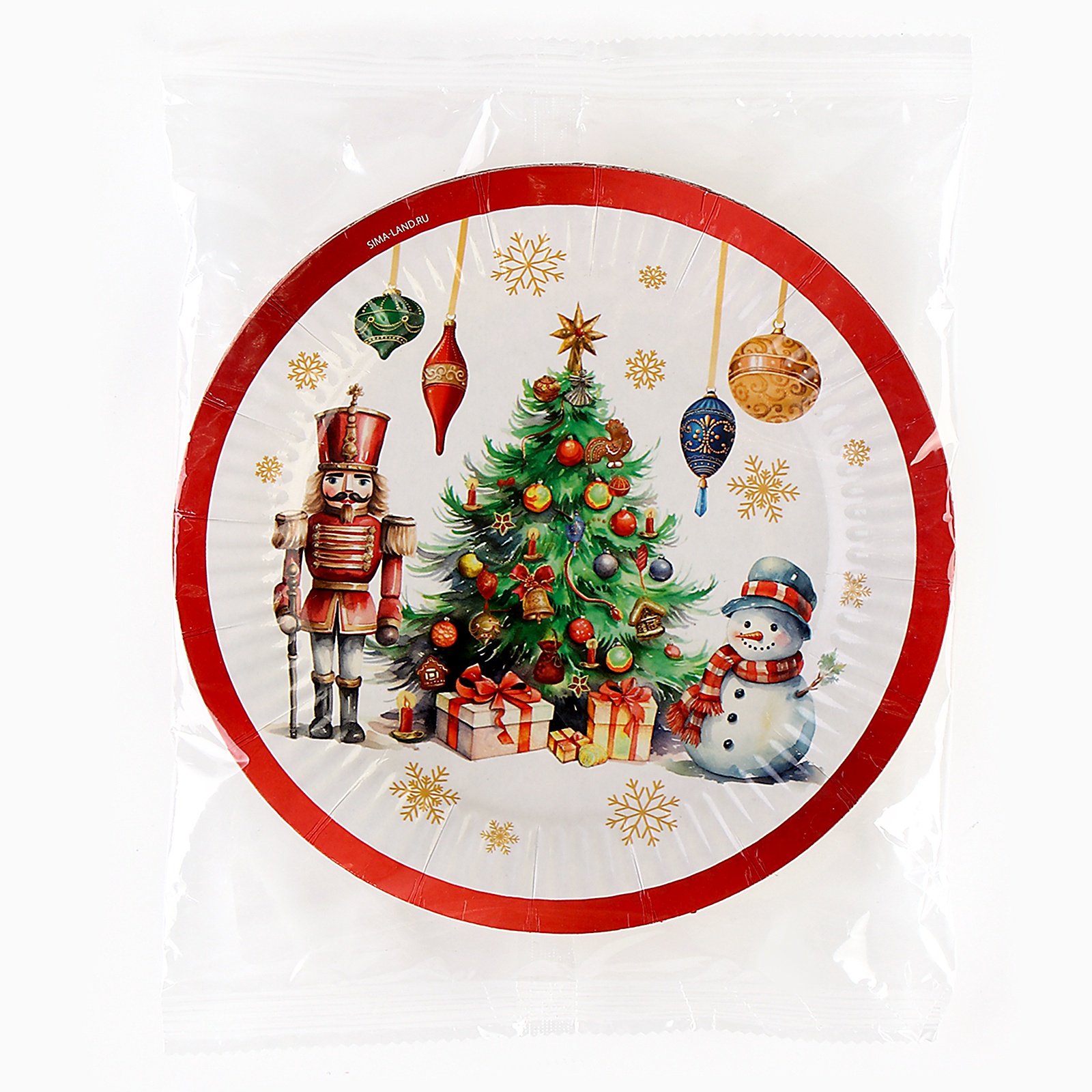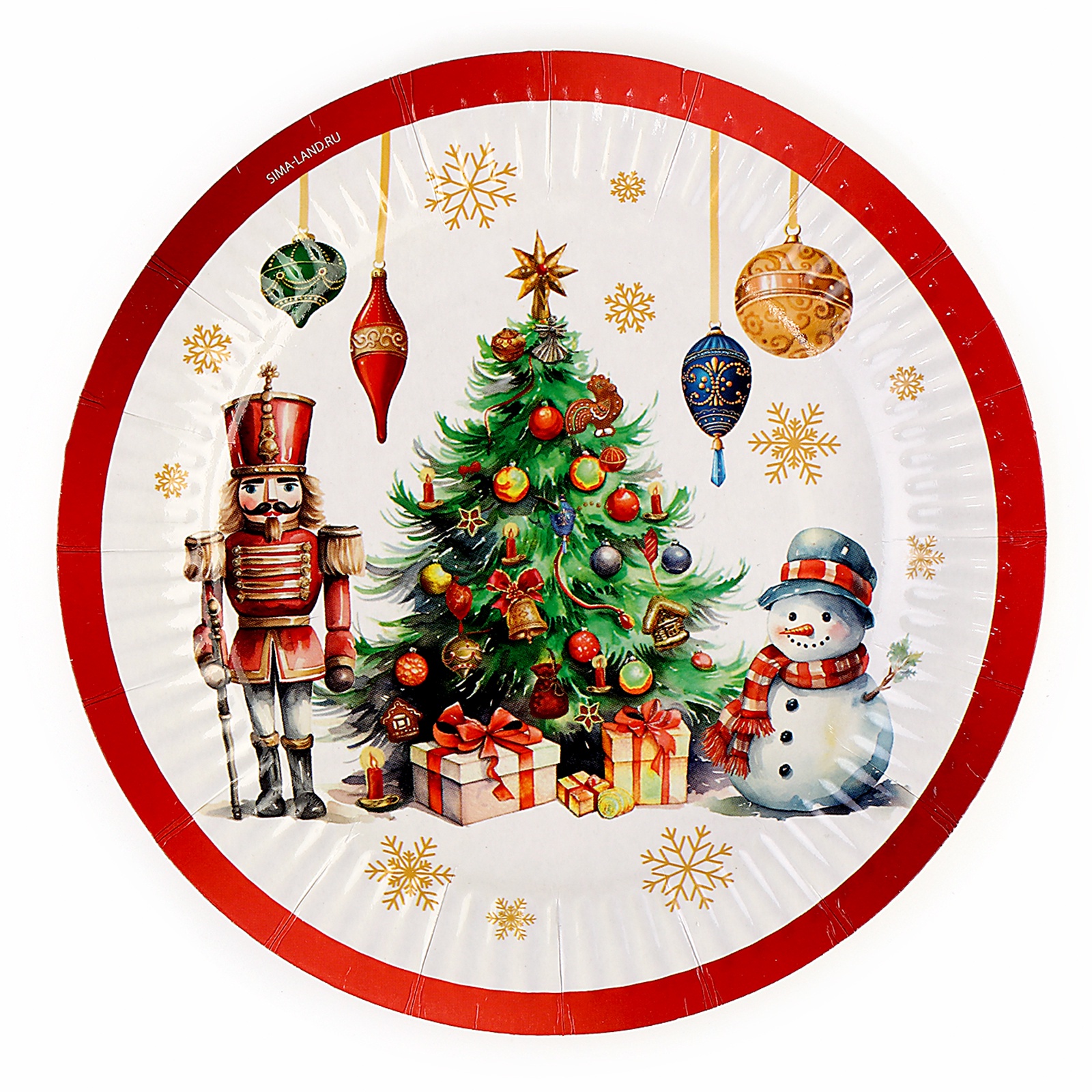Тарелка новогодняя бумажная "с новым годом", сказка, 18 см, одноразовая