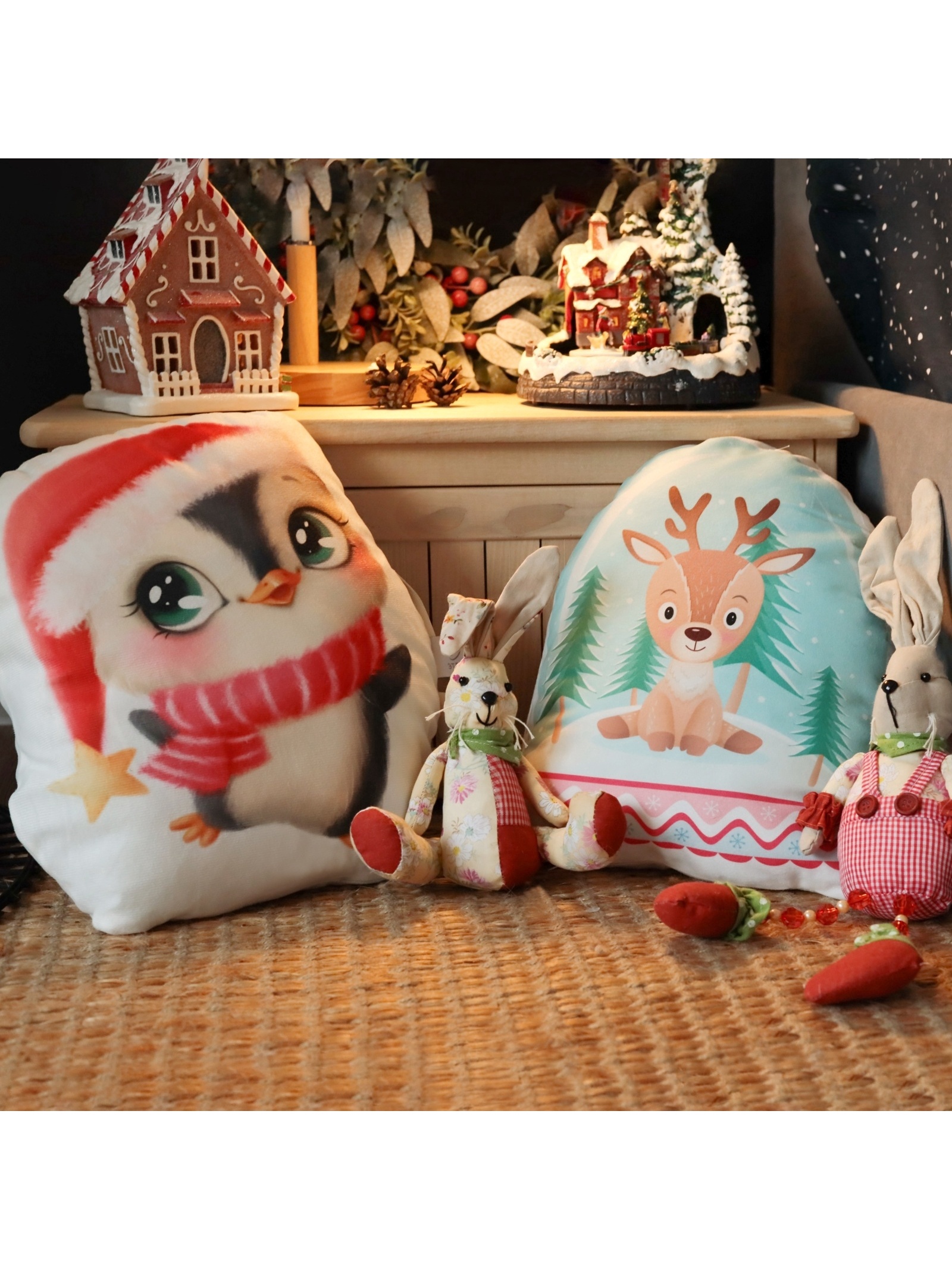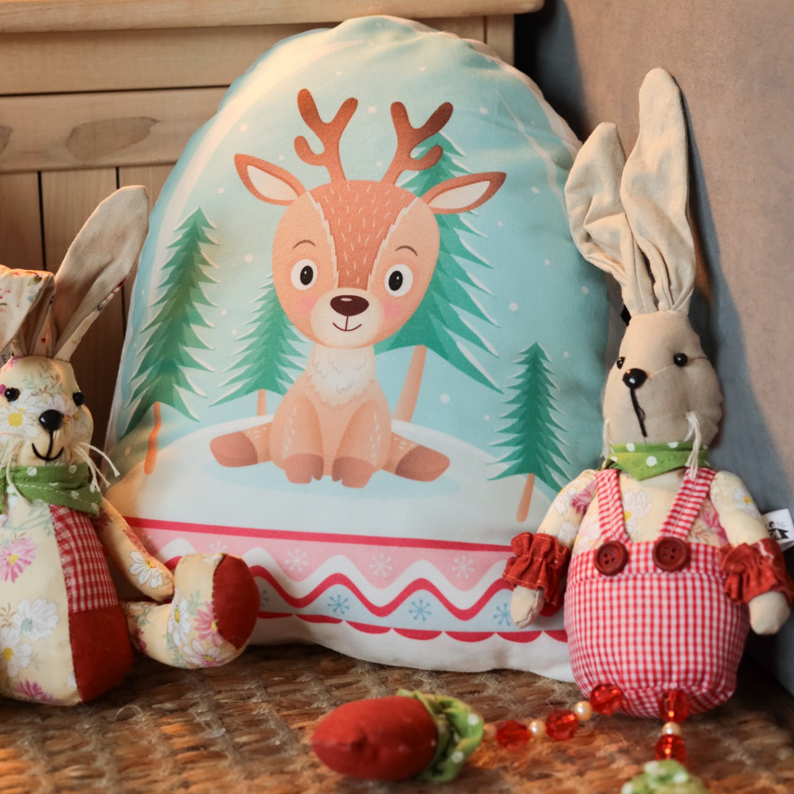 Подушка декоративная новогодняя «этель. олененок» 30 30 см. Фигурная новогодняя подушка 30 30 см из велюра — мягкий образ зимнего праздника, созданный через форму, а не через декор. Её контур напоминает силуэт оленёнка — узнаваемый, но не игриво-яркий, а сдержанно-поэтичный. Белый цвет будто покрыт инеем, а гладкий велюр приглашает прикоснуться. Это не просто украшение, а деталь, которая оживляет атмосферу зимнего дома. Почему она становится частью праздника Фигурная форма — визуальный акцент, который сразу ассоциируется с новогодней сказкой, но без излишней нарядности.Велюр плотностью 160 г/м — мягкий, бархатистый на ощупь, устойчивый к ворсу и сохранению цвета при стирке.Молния по краю — чехол можно снимать и стирать в деликатном режиме при 30 °C.Оттенки — универсальные, легко сочетаются с любыми цветами: от серебряного до тёплого серого и красного.Тематика связана с Новым годом через силуэт, а не через принты — подходит как для детской, так и для гостиной в сдержанном стиле.Как она ведёт себя в быту Велюр не теряет форму после стирки, а запрет на барабанную сушку помогает сохранить структуру наполнителя. Глажка при 150 °C возможна при необходимости — ткань выдерживает умеренное тепло. Отбеливание исключено: оно может повлиять на текстуру и оттенок белого. Подушка хорошо смотрится в паре с другими новогодними элементами — на полке с ёлочными шарами, на диване рядом с пледом или в детском уголке как часть зимней композиции. Её можно использовать как элемент декора, так и как мягкую опору — она устойчива, не деформируется. Цвет:Белый|Форма:Фигурная|Ткань:Велюр|Плотность, г/м :160|Размер, см:30 х 30|На молнии:Да|Материал наполнителя:Синтепон|Вид застёжки:Молния|Тематика:Новогодняя|Вид упаковки:Пакет|Тематика праздника:Новый год|Декоративные элементы:Без элементов|Рекомендации по уходу:Деликатная стирка при 30 °С|Рекомендации по уходу:Глажка при 150 °С|Рекомендации по уходу:Не отбеливать|Рекомендации по уходу:Барабанная сушка запрещена|Состав ткани:Полиэстер|Страна:Россия  развернуть описание ▼