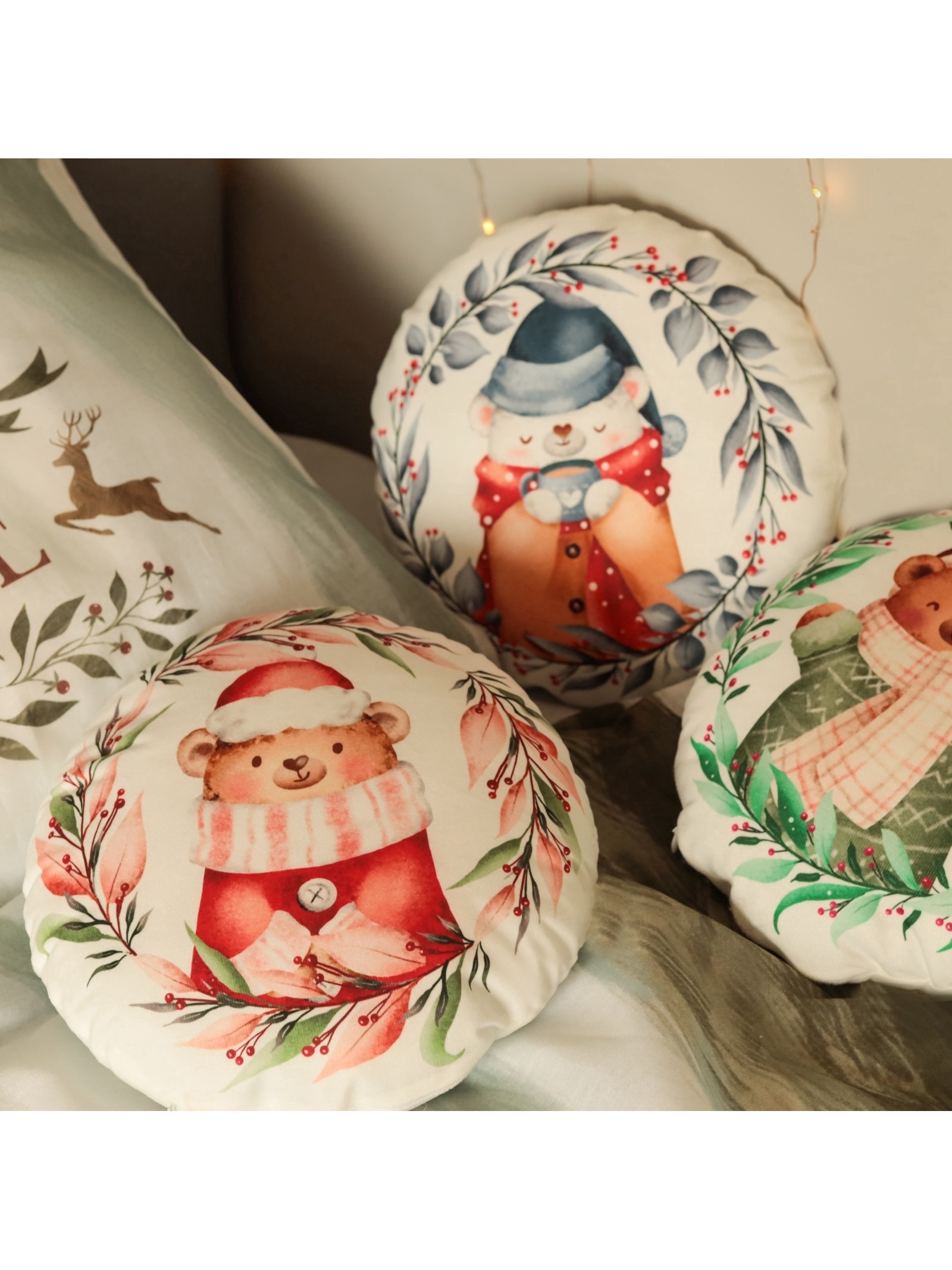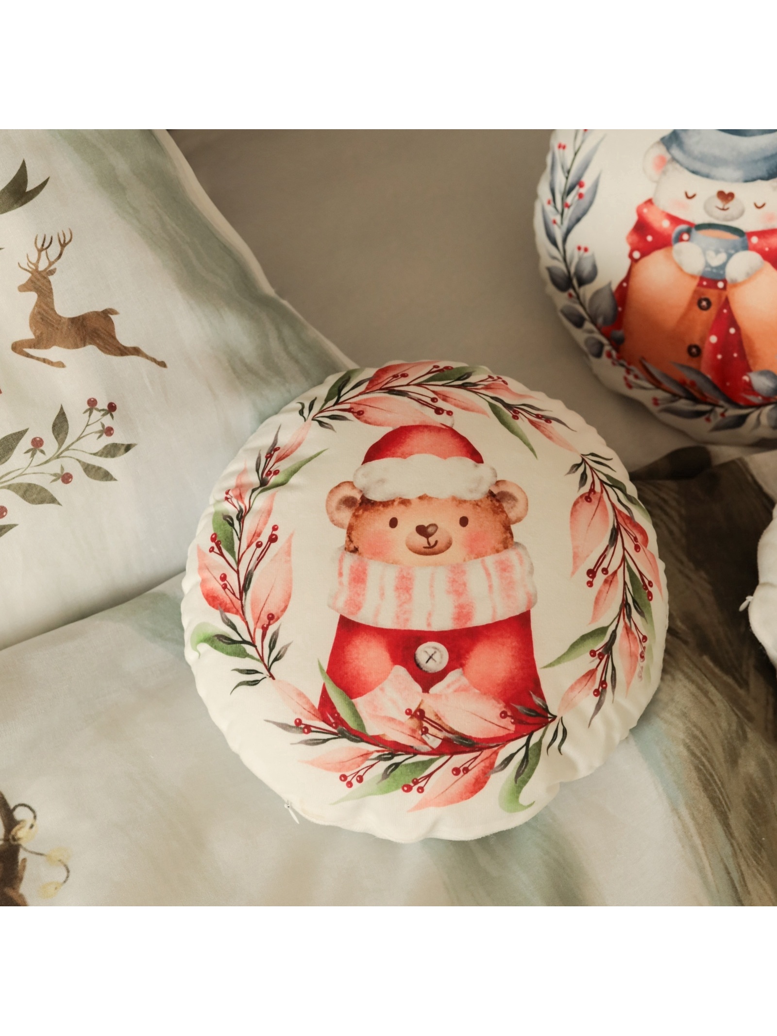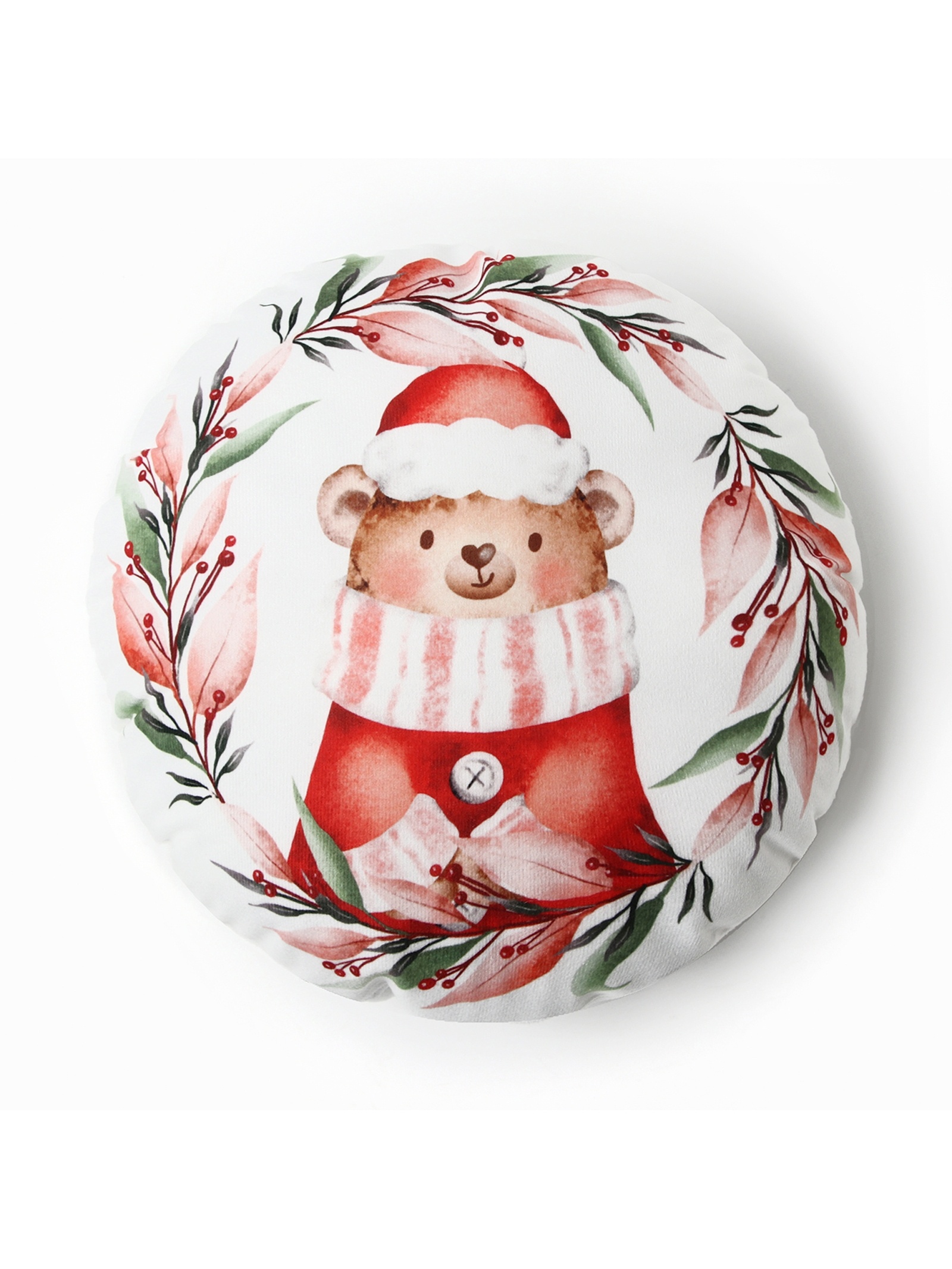 Подушка декоративная новогодняя «этель. мишутка» 32 32 см. Круглая новогодняя подушка 32 32 см из велюра — мягкий акцент, который сразу вызывает улыбку. Бело-красная гамма отсылает к зимним традициям: снегу, варежкам, шапочкам Деда Мороза. Её форма напоминает солнце или лицо мишки — без изображения, но с теплотой в каждой детали. Это не просто украшение, а часть домашнего уюта, особенно близкая детям. Почему она нравится детям Круглая форма — лишена острых углов, безопасна и визуально мягкая, что делает её близкой и понятной для ребёнка.Велюр плотностью 160 г/м — приятный на ощупь, как плюшевая игрушка, не электризуется и не раздражает кожу.Молния по краю — чехол можно снимать и стирать при 30 °C, что важно при активном использовании детьми.Белый и красный цвета — легко сочетаются с детским текстилем, мебелью и игрушками, создавая цельный образ.Упакована в вакуумный пакет — удобно для хранения до праздника и в качестве подарка без дополнительной упаковки.Тематика связана с Новым годом, но не перегружена символами — подходит как для украшения комнаты, так и для детского уголка.Как она вписывается в детский мир Подушка не только украшает, но и участвует в жизни ребёнка. На ней можно сидеть, обнимать, класть голову во время чтения сказок. Её легко включить в новогоднюю ёлочную композицию или положить на кровать как часть праздничного наряда комнаты. Благодаря гладкой велюровой фактуре она не накапливает пыль и легко чистится — практично для семей с детьми. Для тех, кто хочет, чтобы праздник был в каждой детали Эта подушка — не просто элемент декора, а способ включить ребёнка в атмосферу праздника через тактильные ощущения. Она мягкая, как зимняя сказка, и тёплая, как объятия. Подушка будто говорит: ”Новый год — это не только ёлка и подарки. Это ещё и то, на что можно положить голову, когда хочется верить в чудо”. Цвет:Белый|Цвет:Красный|Форма:Круглая|Ткань:Велюр|Плотность, г/м :160|Размер, см:32 х 32|На молнии:Да|Материал наполнителя:Синтепон|Вид застёжки:Молния|Тематика:Новогодняя|Вид упаковки:Вакуумный пакет|Тематика праздника:Новый год|Декоративные элементы:Без элементов|Рекомендации по уходу:Не отбеливать|Рекомендации по уходу:Стирка при 30 °С|Состав ткани:Полиэстер|Страна:Россия  развернуть описание ▼