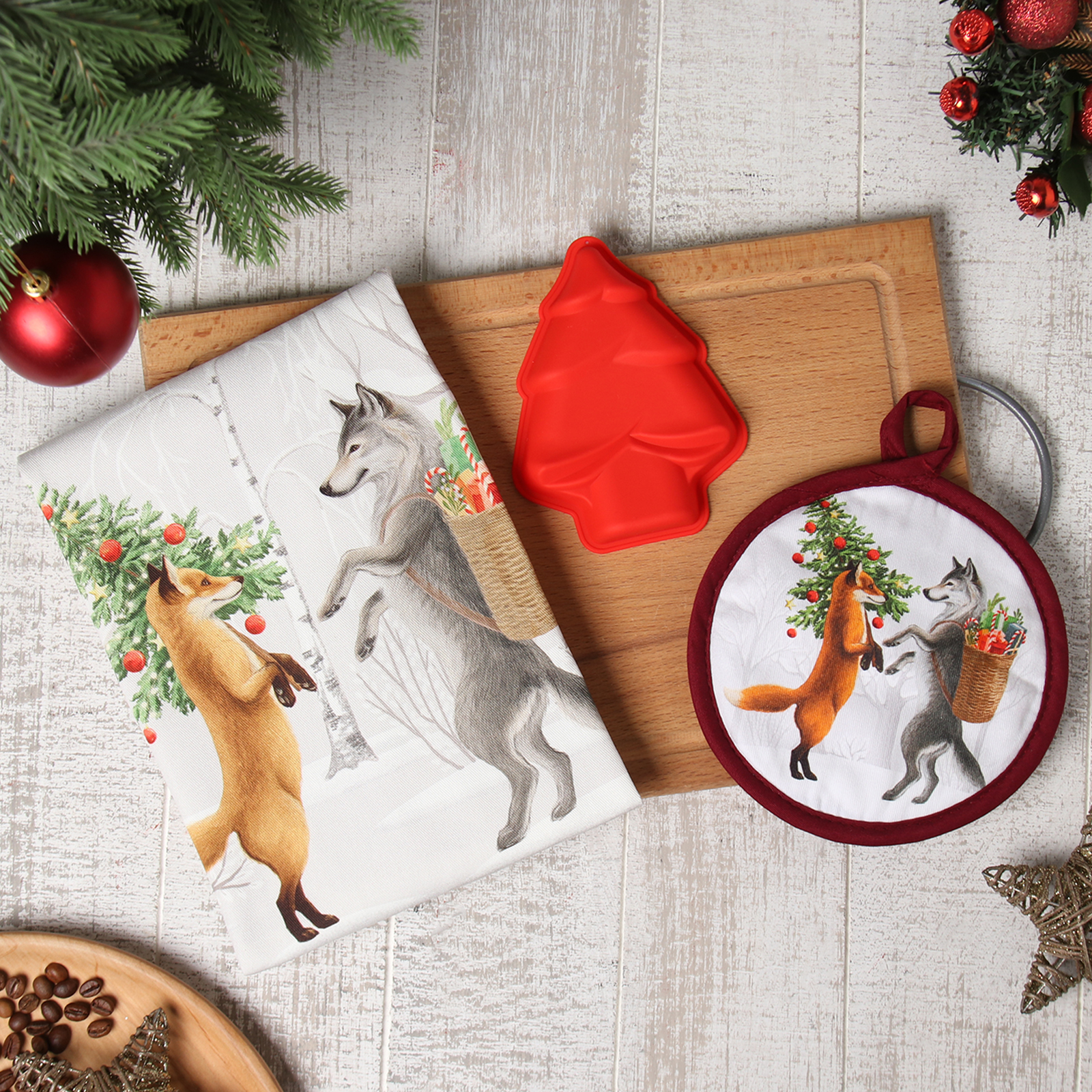 Набор подарочный новогодний этель лесные звери: полотенце 40х70 см., форма для выпекания, прихватка