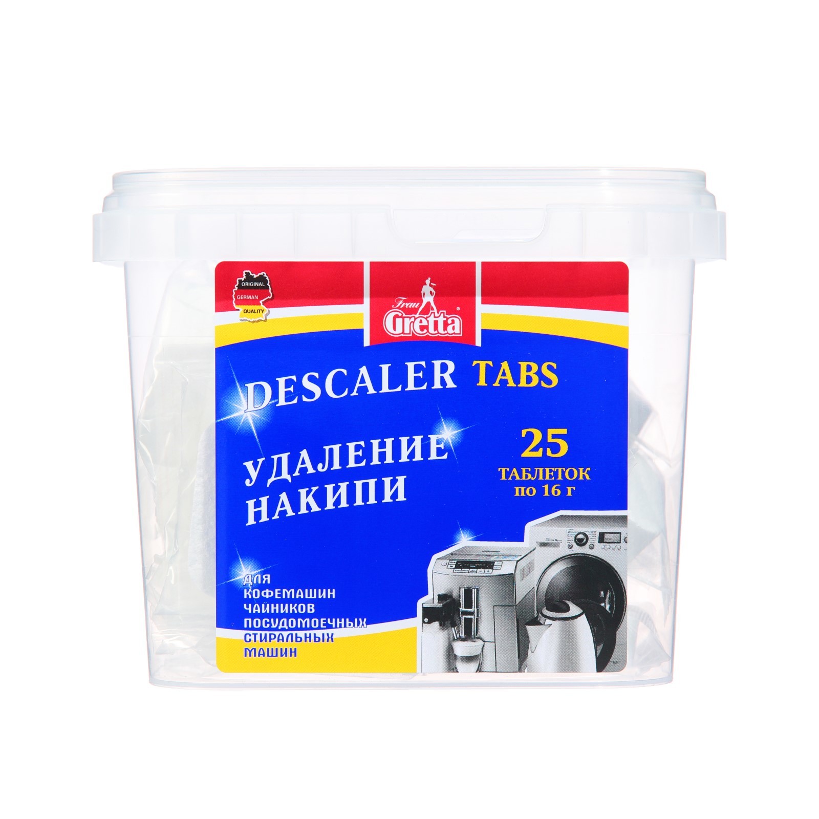 Таблетки для удаления накипи frau gretta в бытовой технике 25 шт. Домашняя техника требует особого ухода. Таблетки FRAU GRETTA помогут трудолюбивым хозяйкам эффективного удалить жировые и пищевые загрязнения, накипь с нагревательных элементов, внутренних деталей из пластмассы и металла. Таблетки сокращают потребление электроэнергии и время выполнения программ и продлевают срок службы бытовой техники. Назначение: Универсальное Температурное ограничение: Нет  развернуть описание ▼