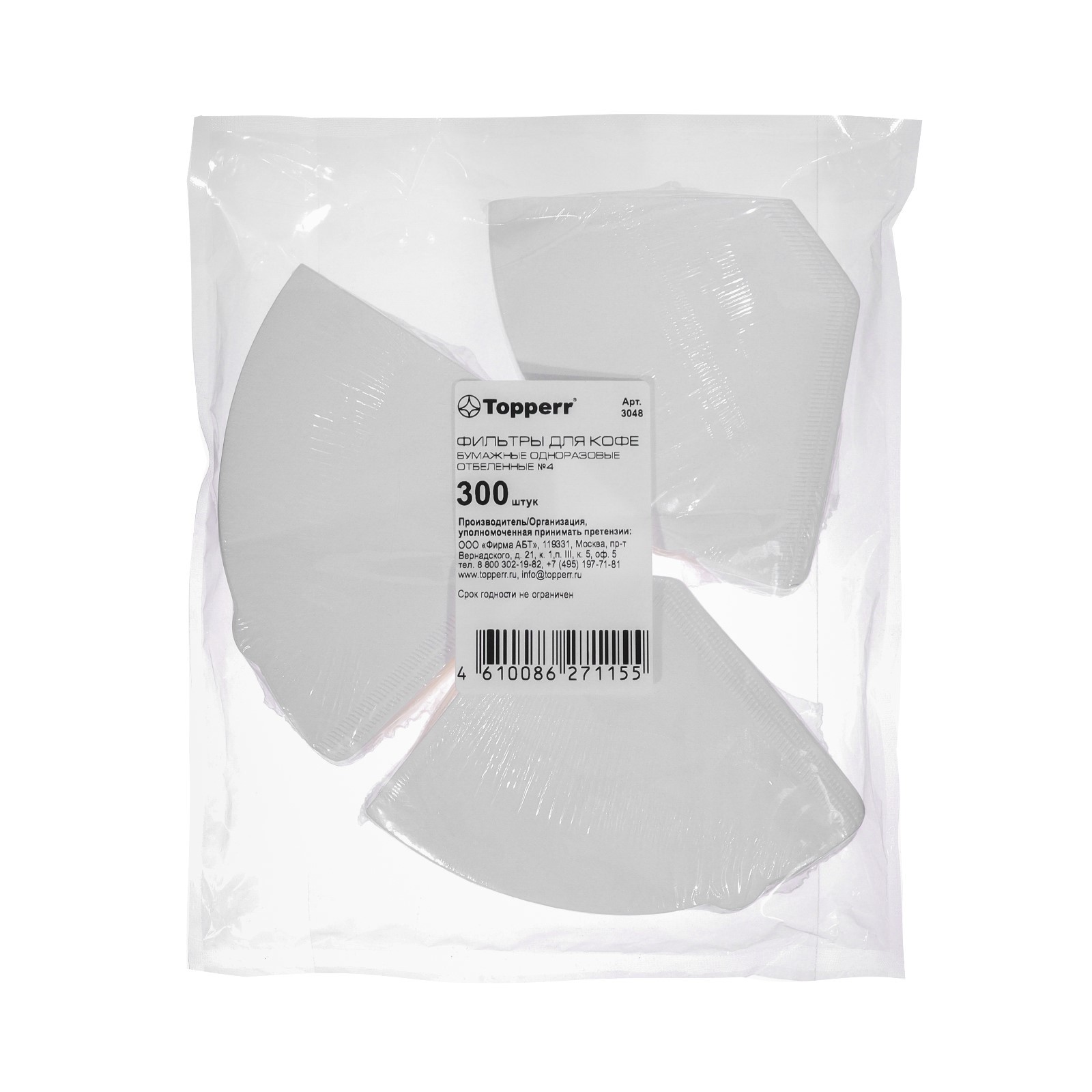 Фильтр бумажный Topperr для кофеварок №4 300шт, отбеленный