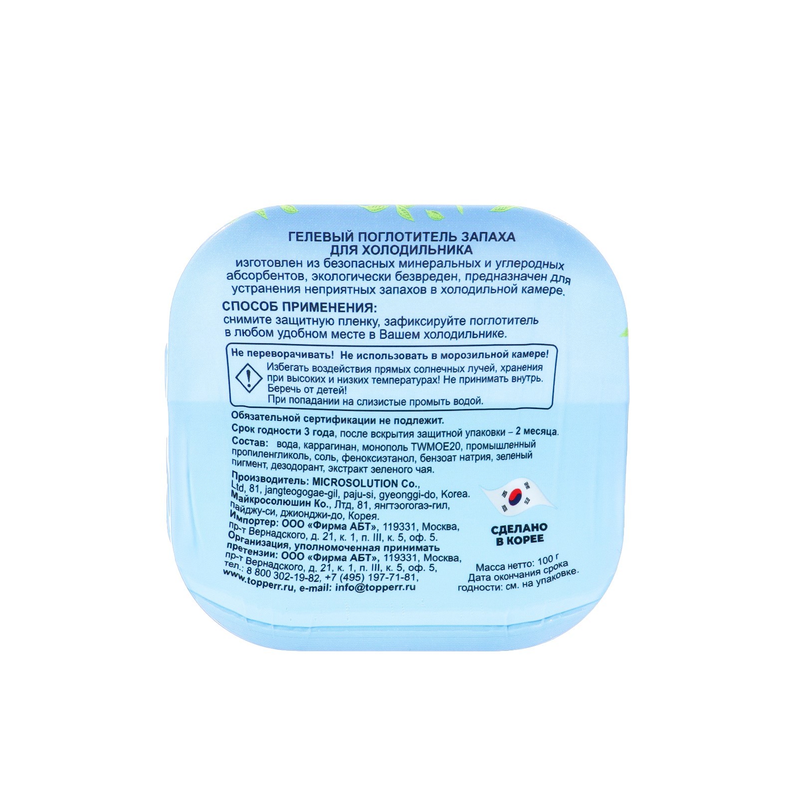 Поглотитель запаха Topperr для холодильника, гель
