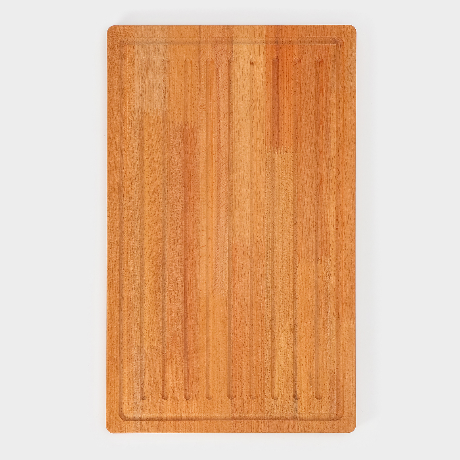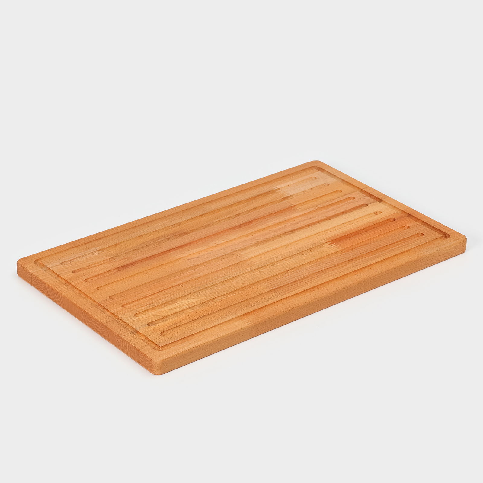 Доска разделочная для нарезки и подачи хлеба adelica, 50x30x2 см, бук. Как ухаживать за деревянной посудой Adelica?Деревянная посуда имеет свои особенности, которые необходимо знать, чтобы случайно не увидеть на любимом изделие трещину или плесень. Самое важное это:• Не ставить деревянную посуду в микроволновку. Если разогревать еду в такой посуде, то древесина начнет иссушиваться, трескаться, терять плотность, постепенно разрушаться изнутри. • Не мыть в посудомоечной машине. Вода смывает защитный слой деревянных изделий, что способствует появлению мелких трещин. По этой же причине деревянную посуду стоит уберегать от длительного контакта с водой. • Нежелательно использовать под жирную пищу. Также за деревянной посудой необходимо правильно и своевременно ухаживать:• Вытирайте насухо сразу после того, как вымыли её. После чего оставьте высыхать на проветриваемом месте. • Посуду из дерева нужно обрабатывать маслом раз в месяц. Сухую поверхность протереть тряпочкой с маслом и оставить высыхать на ночь. • Убирать неровности от ножа, въевшуюся грязь или даже плесень можно с помощью наждачной бумаги. Так посуда очистится и обретёт обновленный вид. • Мыть деревянные доски можно любым средством, но рекомендуем остановиться на обычной соде. А также раз в пару недель протирать уксусом, чтобы убрать бактерии. Цвет: Коричневый Форма: Прямоугольная Длина, см: 50 Ширина, см: 30 Высота, см: 2 В наборе, шт.: 1 Вид дерева: Бук Материал: Дерево Из натурального дерева: Да Тип доски: Стандартная Тип нанесения рисунка: Без нанесения Температурное ограничение: Нет Можно мыть в посудомоечной машине: Нет Особенности: Без особенностей Форма: Прямоугольник  развернуть описание ▼