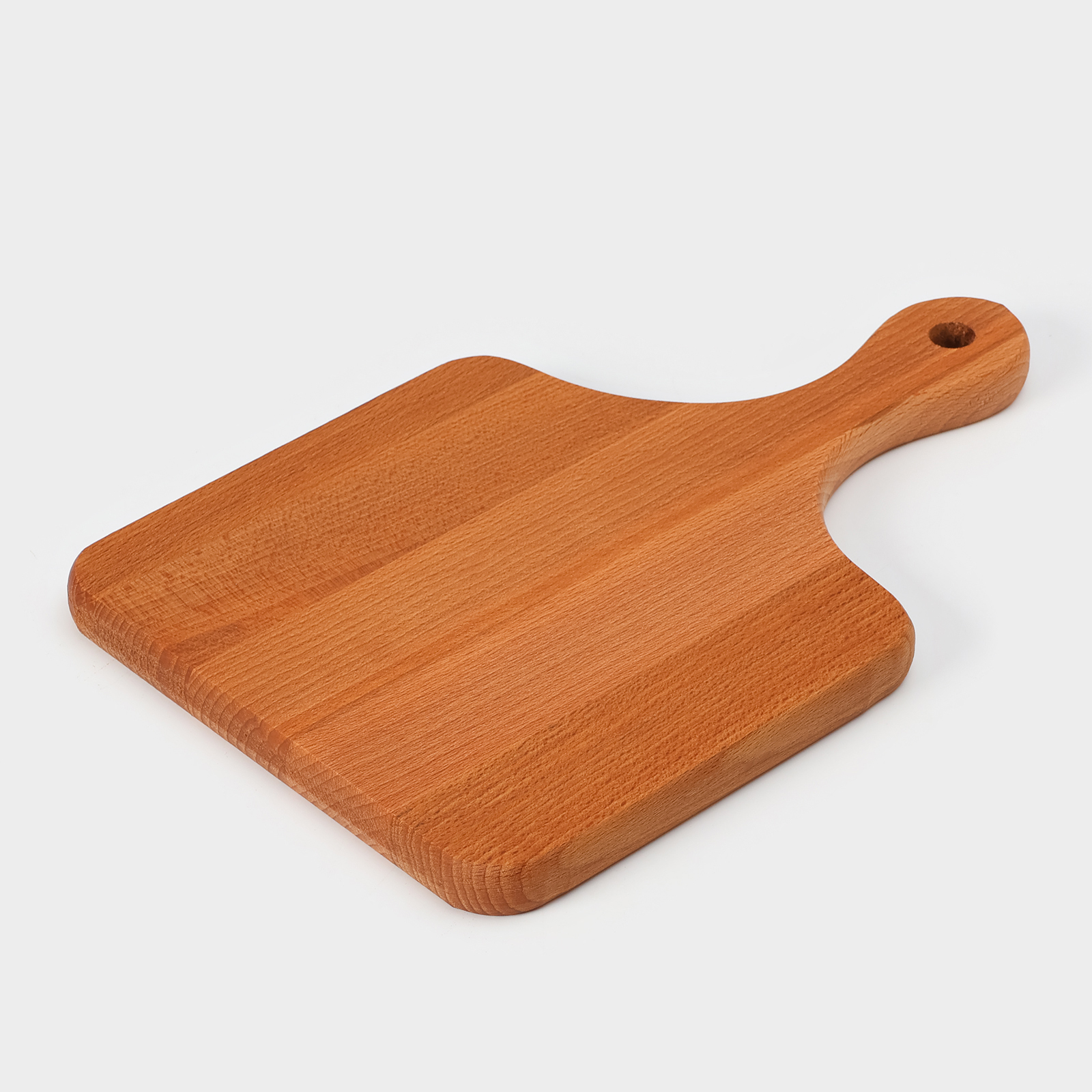 Доска разделочная adelica «для подачи», 30x19x1,6 см, с ручкой, бук. Как ухаживать за деревянной посудой Adelica?Деревянная посуда имеет свои особенности, которые необходимо знать, чтобы случайно не увидеть на любимом изделие трещину или плесень. Самое важное это:• Не ставить деревянную посуду в микроволновку. Если разогревать еду в такой посуде, то древесина начнет иссушиваться, трескаться, терять плотность, постепенно разрушаться изнутри. • Не мыть в посудомоечной машине. Вода смывает защитный слой деревянных изделий, что способствует появлению мелких трещин. По этой же причине деревянную посуду стоит уберегать от длительного контакта с водой. • Нежелательно использовать под жирную пищу. Также за деревянной посудой необходимо правильно и своевременно ухаживать:• Вытирайте насухо сразу после того, как вымыли её. После чего оставьте высыхать на проветриваемом месте. • Посуду из дерева нужно обрабатывать маслом раз в месяц. Сухую поверхность протереть тряпочкой с маслом и оставить высыхать на ночь. • Убирать неровности от ножа, въевшуюся грязь или даже плесень можно с помощью наждачной бумаги. Так посуда очистится и обретёт обновленный вид. • Мыть деревянные доски можно любым средством, но рекомендуем остановиться на обычной соде. А также раз в пару недель протирать уксусом, чтобы убрать бактерии. Цвет: Коричневый Форма: Квадратная Длина, см: 30 Ширина, см: 19 Высота, см: 1.6 В наборе, шт.: 1 Вид дерева: Бук Материал: Дерево Из натурального дерева: Да Тип доски: Стандартная Тип нанесения рисунка: Без нанесения Температурное ограничение: Нет Можно мыть в посудомоечной машине: Нет Особенности: Подвесная Форма: Квадрат, куб  развернуть описание ▼