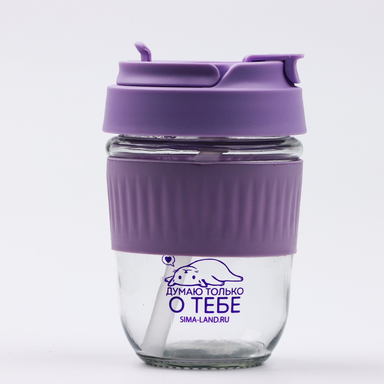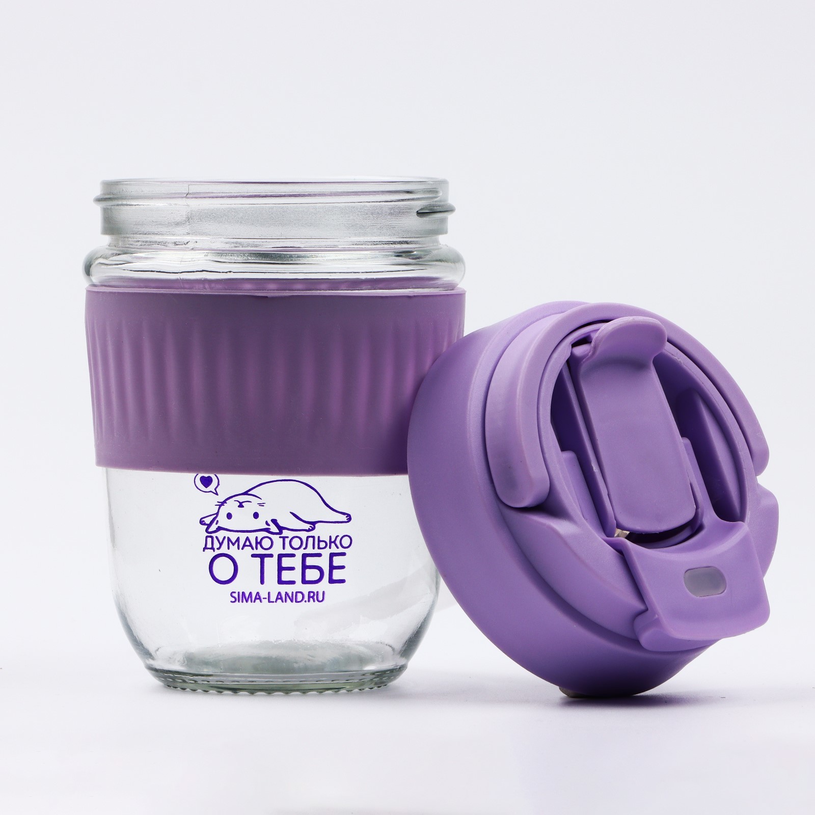 Стакан с крышкой "думаю о тебе", 350 мл, стекло