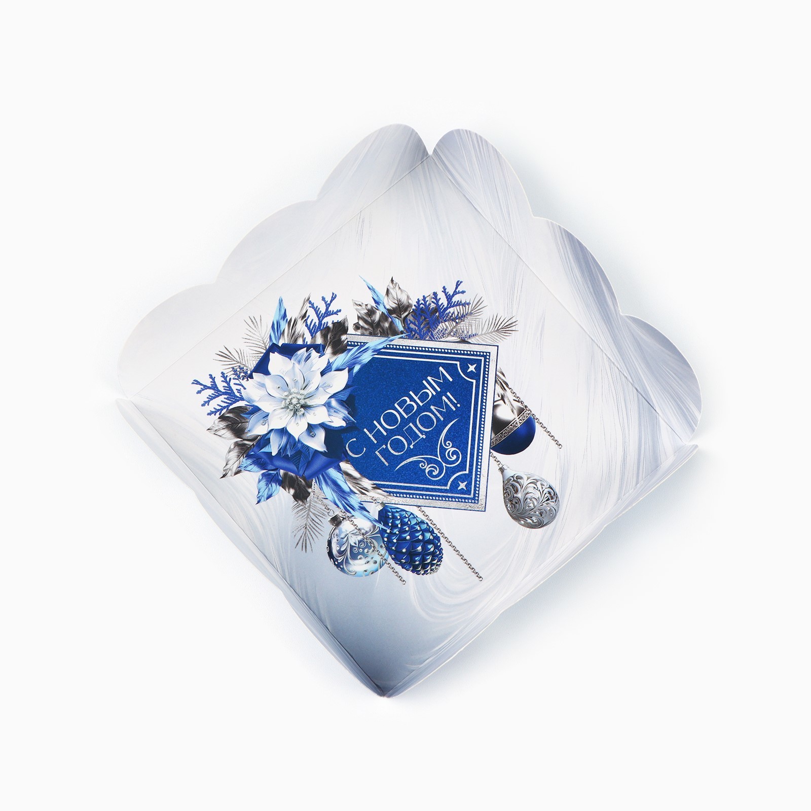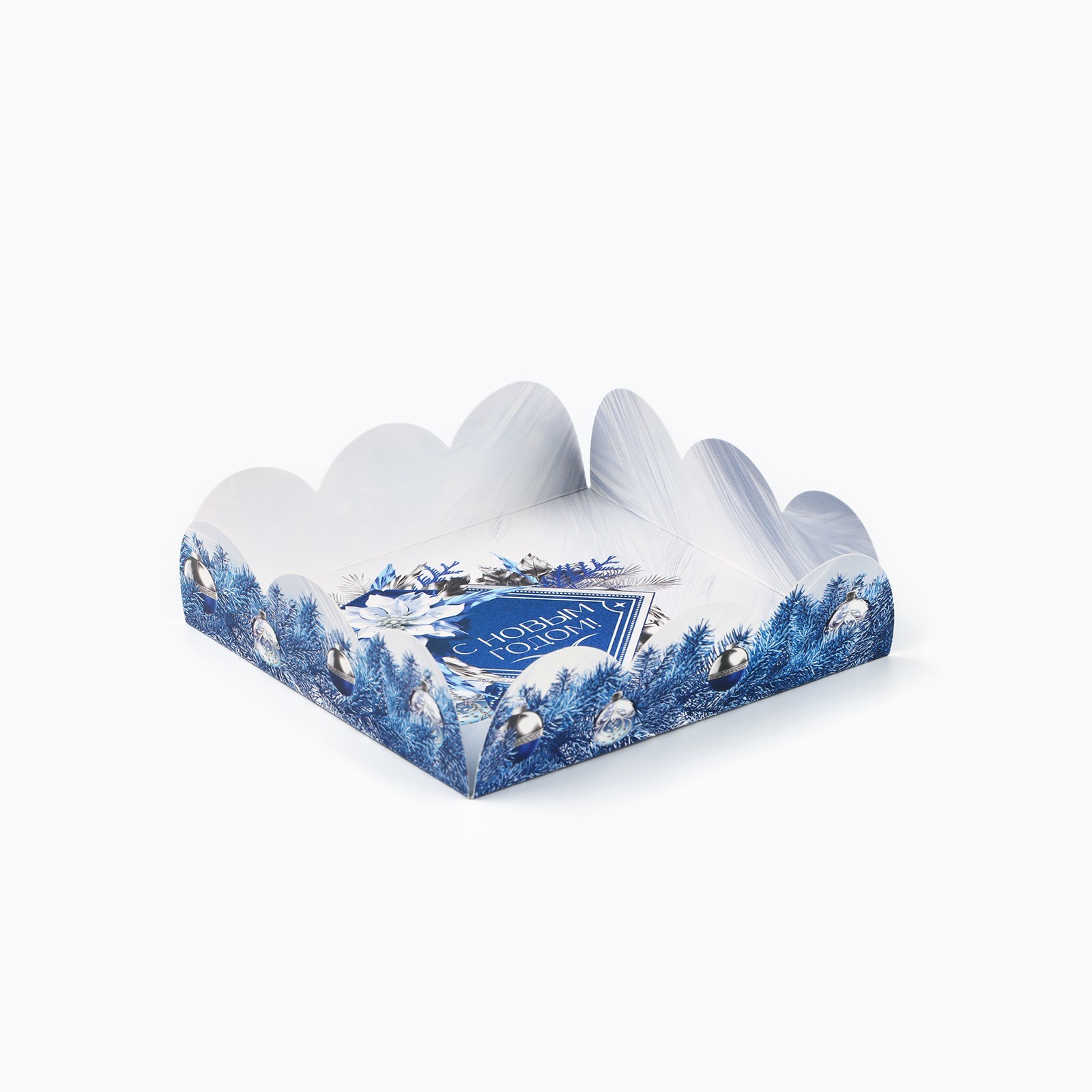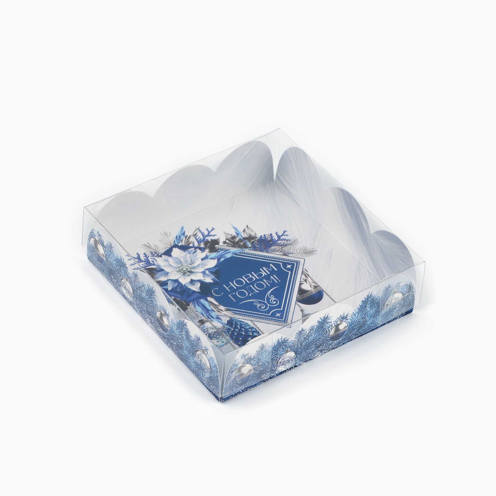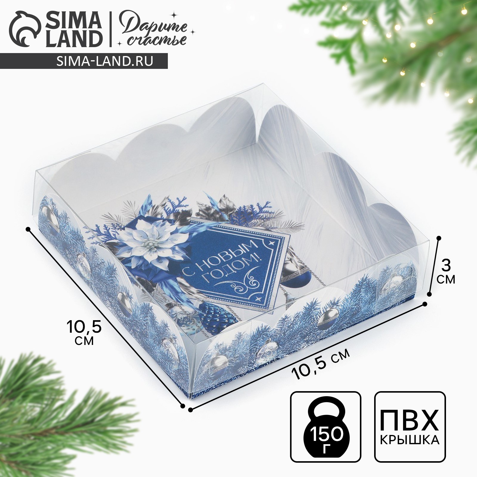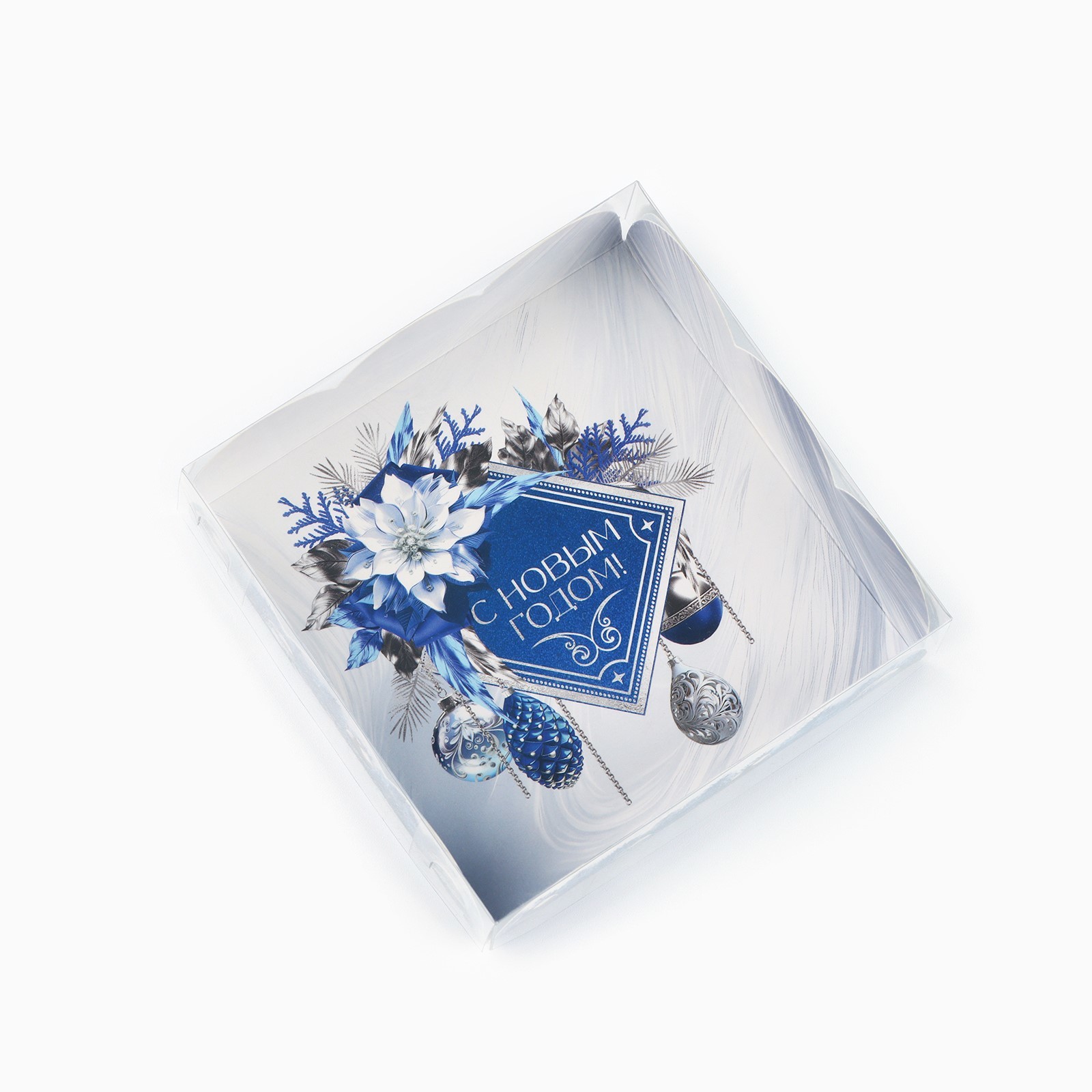 Коробка для кондитерских изделий с пластиковой крышкой «с новым годом!», 10.5 х 10.5 х 3 см. Цвет:Синий|Форма:Квадратная|Плотность, г/м :250|Длина, см:10.5|Ширина, см:10.5|Высота, см:3|Тематика праздника:Новый год|Материал:Картон|Страна:Китай
