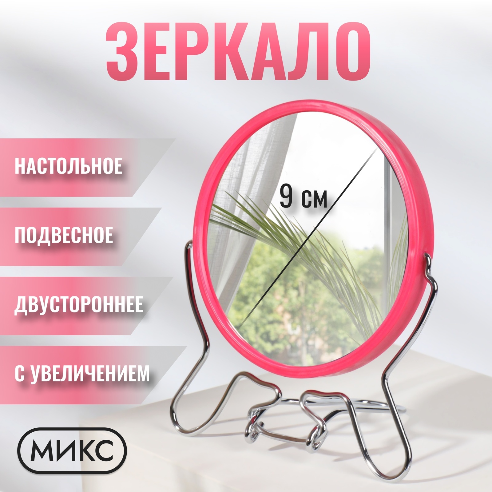 Зеркало настольное, с увеличением х2, настенное, двустороннее, 11 18 см, (d=9 см), микс