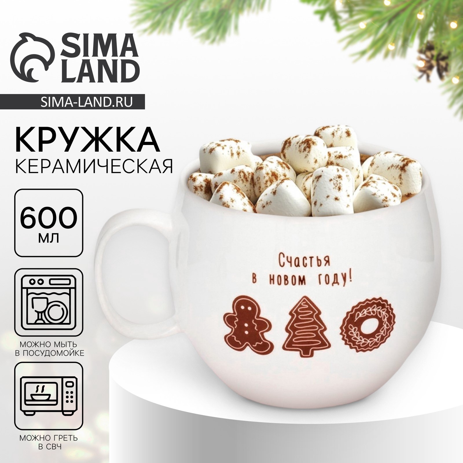 Кружка керамическая новогодняя «счастья в новом году!», 600 мл