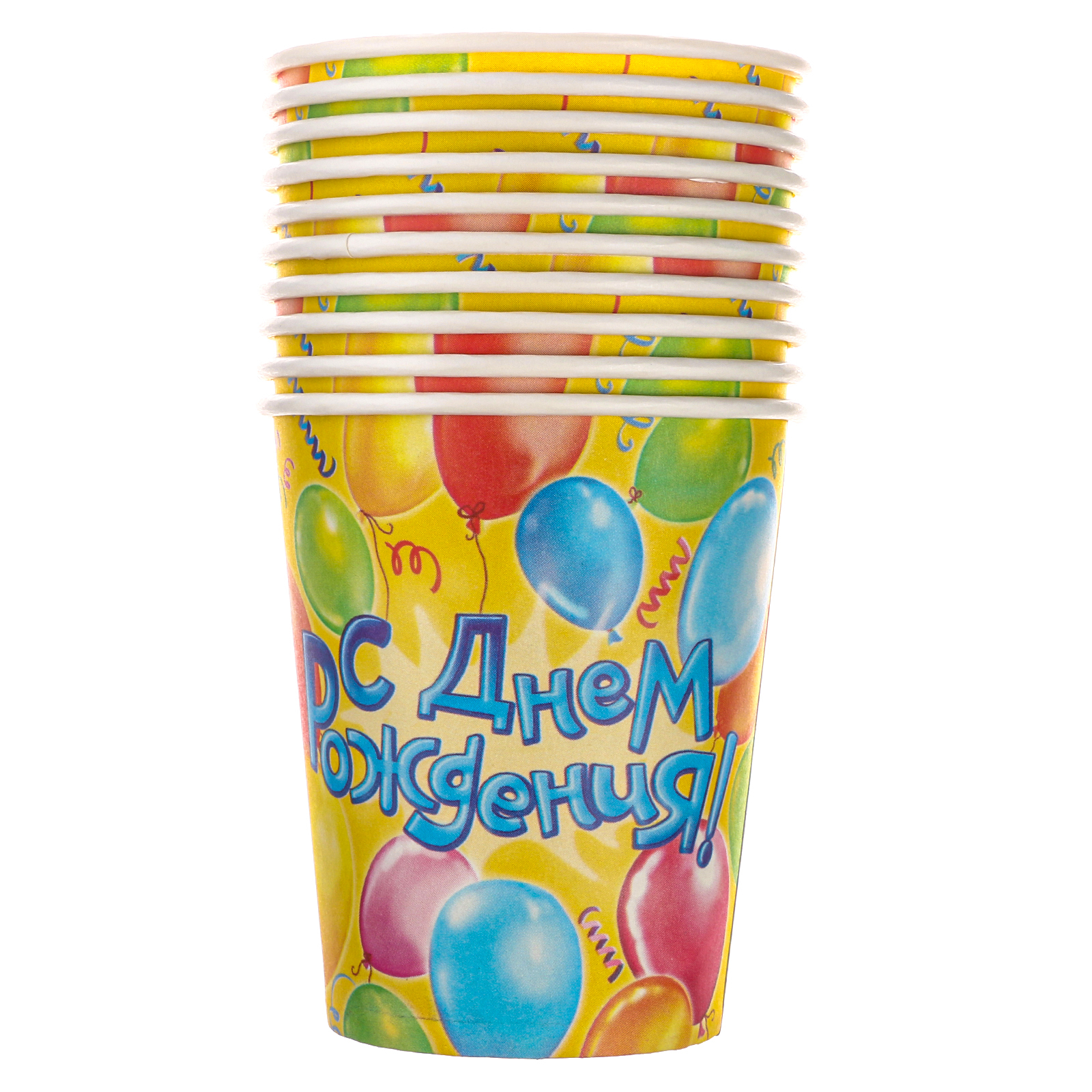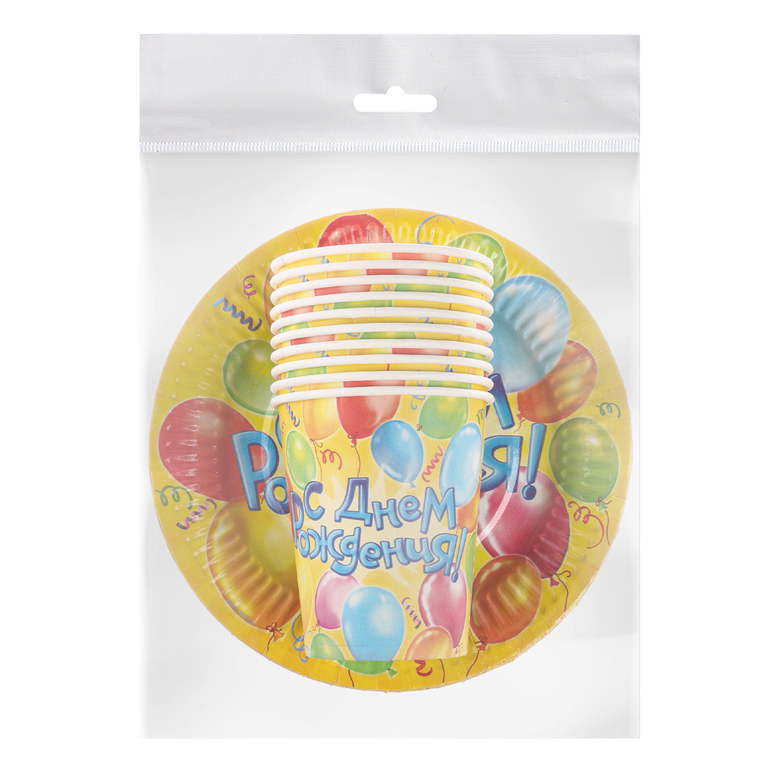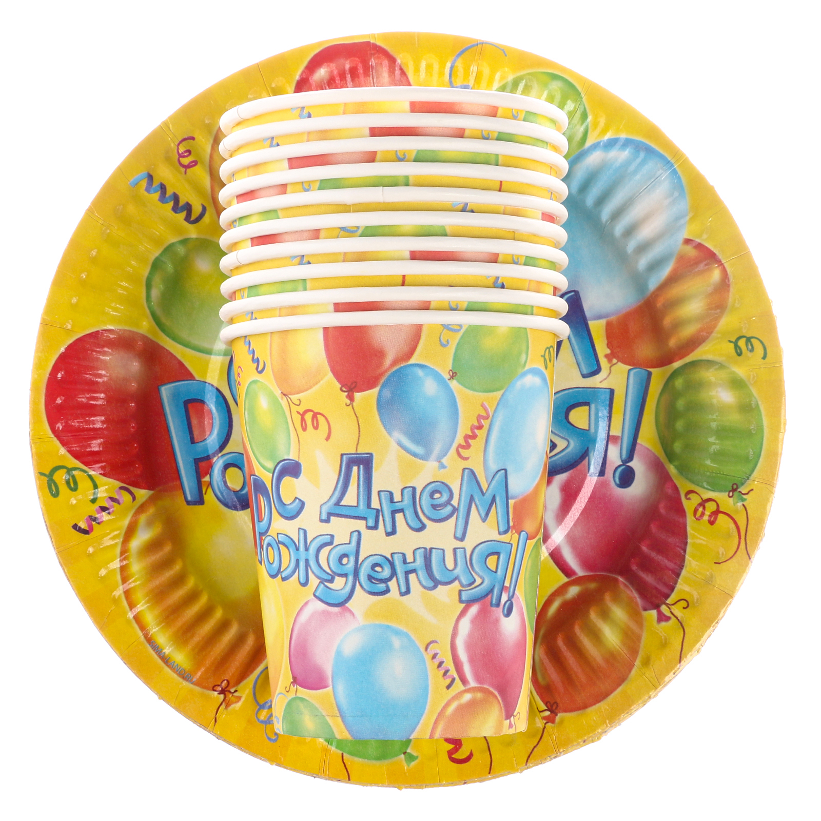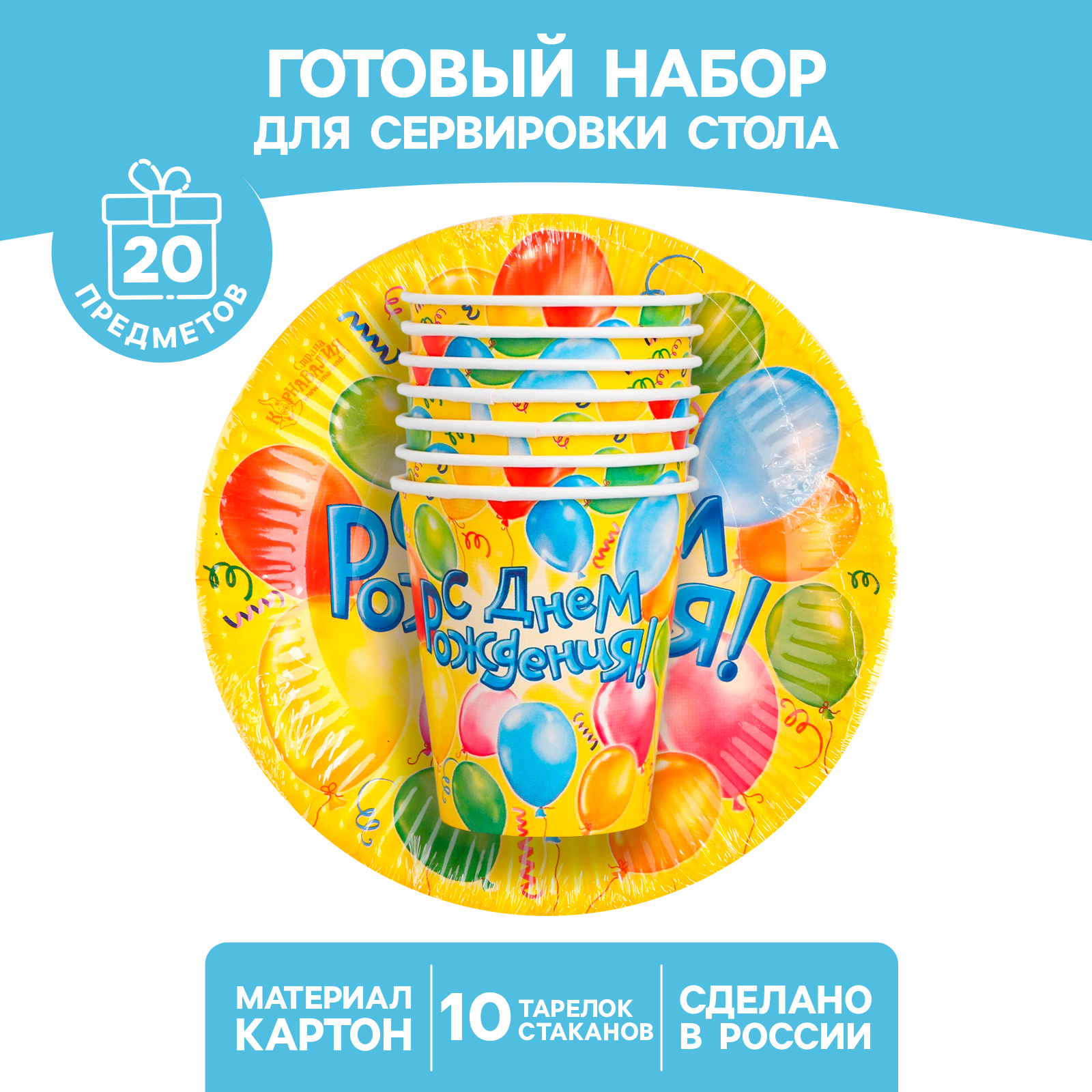 Набор бумажной посуды одноразовый "воздушные шары", 10 стаканов, 10 тарелок