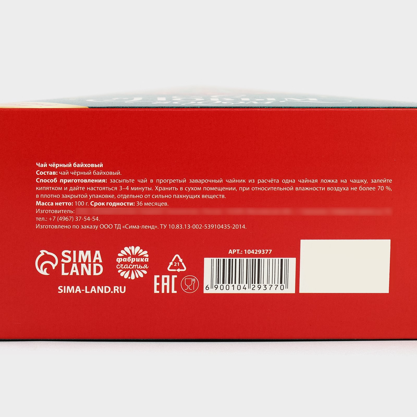 Чай новогодний чёрный «с новым годом», 100 г. При оформление заказа, просим запрашивать актуальные сроки годности у менеджераСостав: чай чёрный байховый, ароматизатор. Способ приготовления: засыпьте чай в прогретый заварочный чайник из расчёта одна чайная ложка на чашку, залейте кипятком и дайте настояться 3–4 минуты. Хранить в сухом помещении, при относительной влажности воздуха не более 70 %, в плотно закрытой упаковке, отдельно от сильно пахнущих веществ. Масса нетто: 100 г Срок годности: 36 месяцев. Набор:Нет|Вес нетто, г:100|Фасовка:Весовой|Вид чая:Чёрный|Символ года:Нет|Тематика праздника:Новый год|Подарочный чай :Да|Добавки чая:Без добавок|Вид упаковки :В картонной коробке|Страна:Россия  развернуть описание ▼