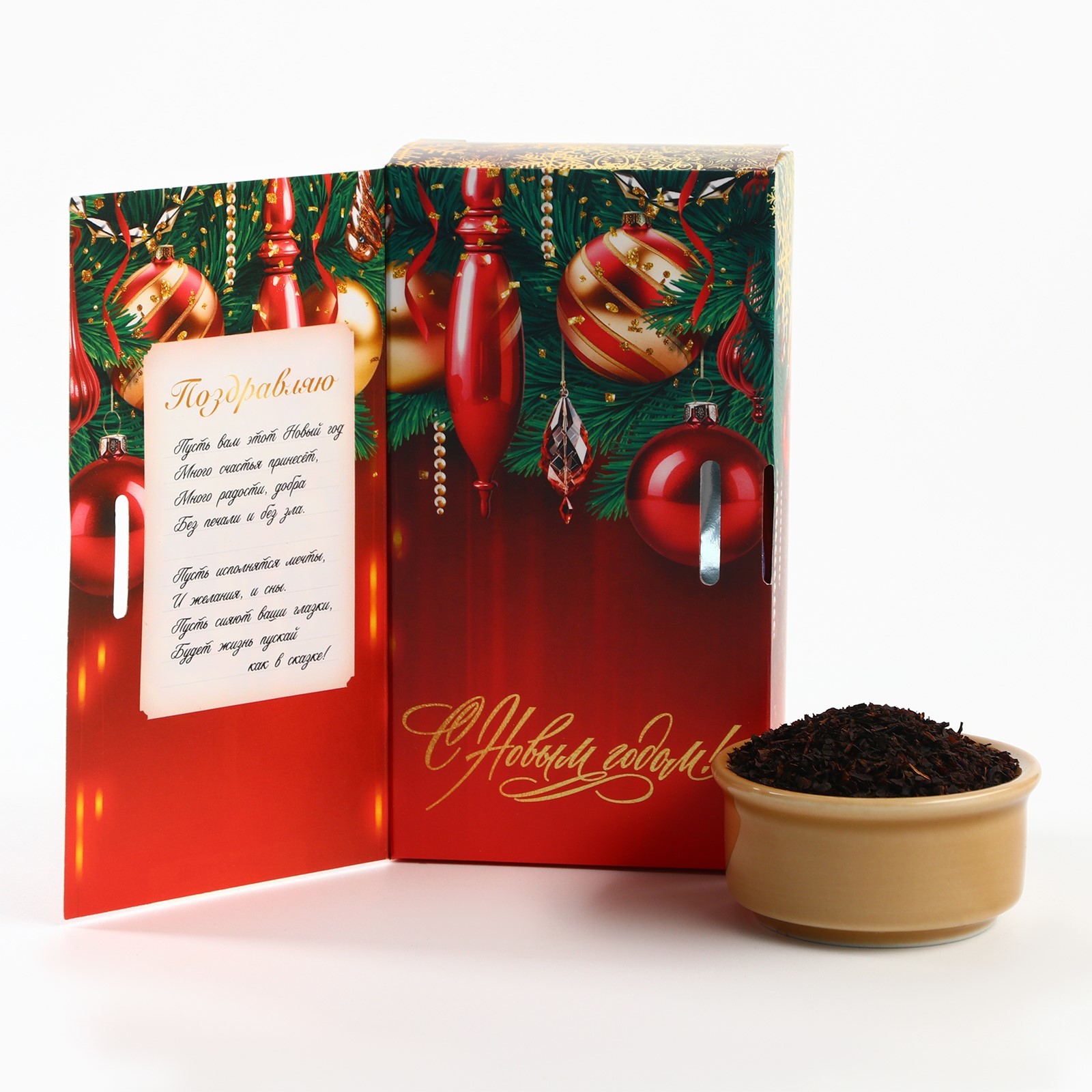 Чай новогодний в коробке - книге «с новым годом», 100 г. ПРИ ОФОРМЛЕНИИ ЗАКАЗА, ПРОСИМ ЗАПРАШИВАТЬ АКТУАЛЬНЫЕ СРОКИ ГОДНОСТИ У МЕНЕДЖЕРА Состав: чай чёрный байховый, ароматизатор.. Способ приготовления: засыпьте чай в прогретый заварочный чайник из расчёта одна чайная ложка на чашку, залейте кипятком и дайте настояться 3–4 минуты. Хранить в сухом помещении, при относительной влажности воздуха не более 70 %, в плотно закрытой упаковке, отдельно от сильно пахнущих веществ. Срок годности: 36 месяцев. Масса нетто: 100 г. Набор:Нет|Вес нетто, г:100|Фасовка:Весовой|Вид чая:Чёрный|Символ года:Нет|Тематика праздника:Новый год|Подарочный чай :Да|Добавки чая:Без добавок|Вид упаковки :В картонной коробке|Страна:Россия  развернуть описание ▼