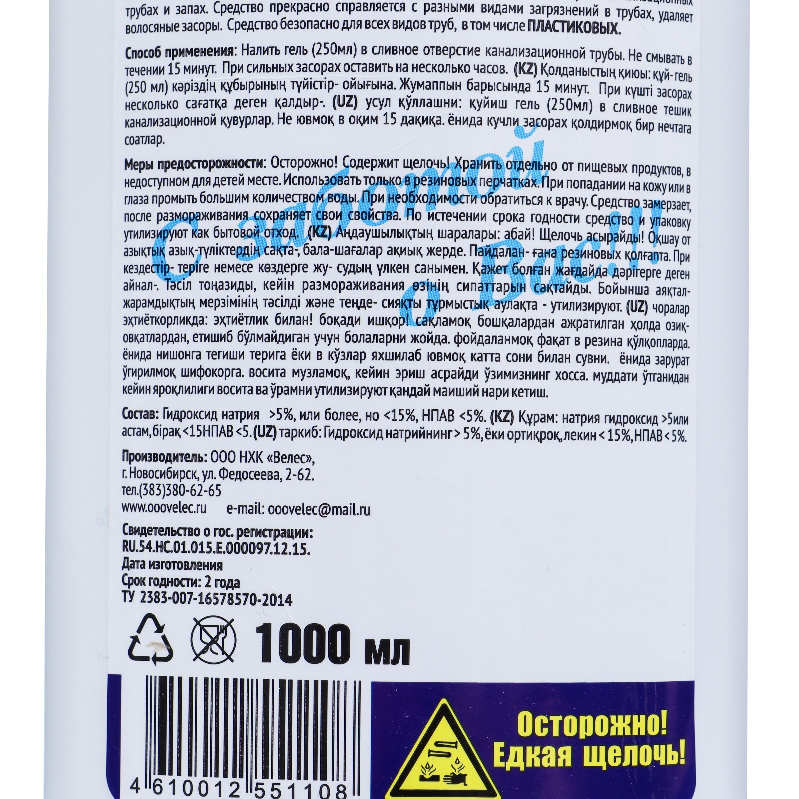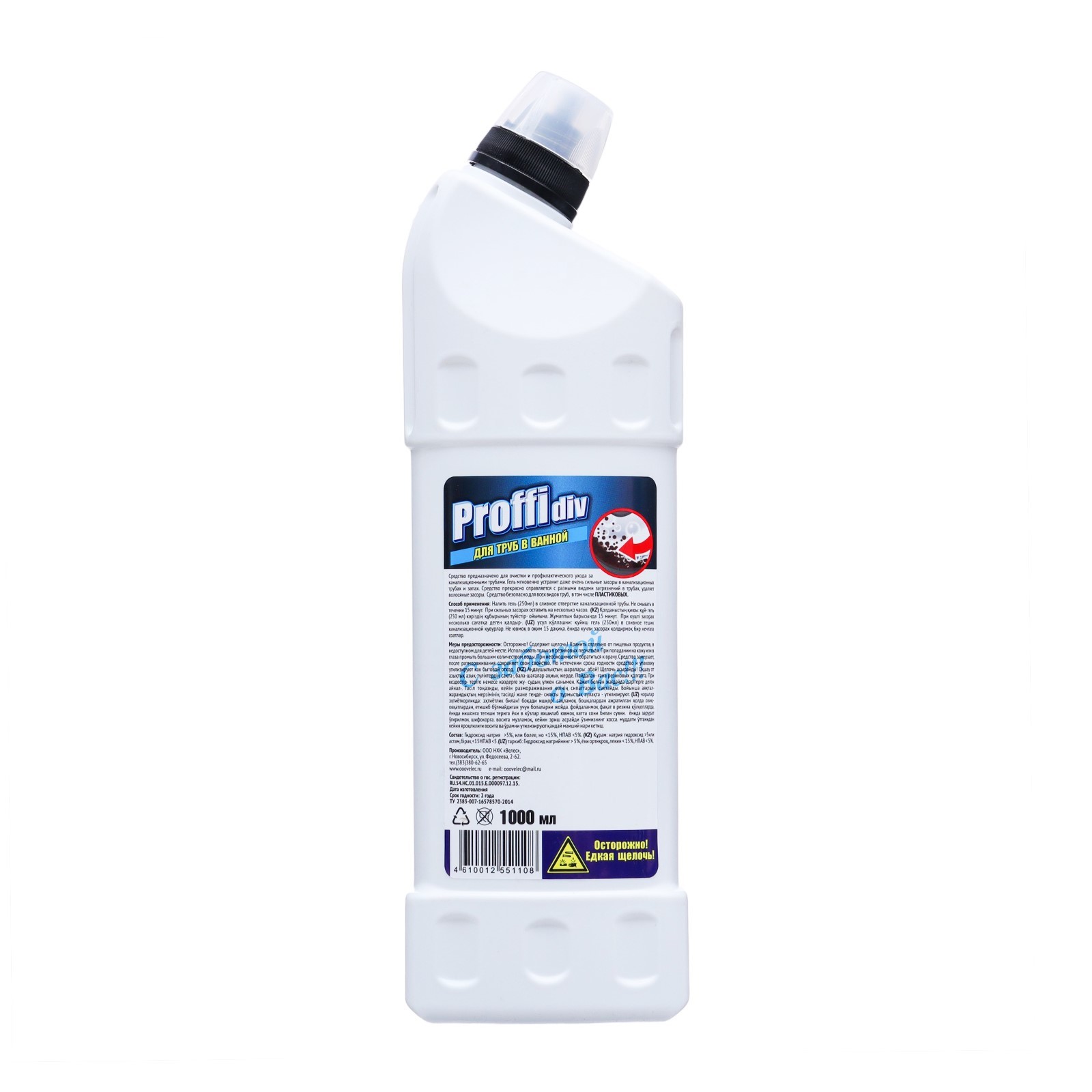 Гель "Proffidiv" для чистки канализационных труб в ванной, 1 л