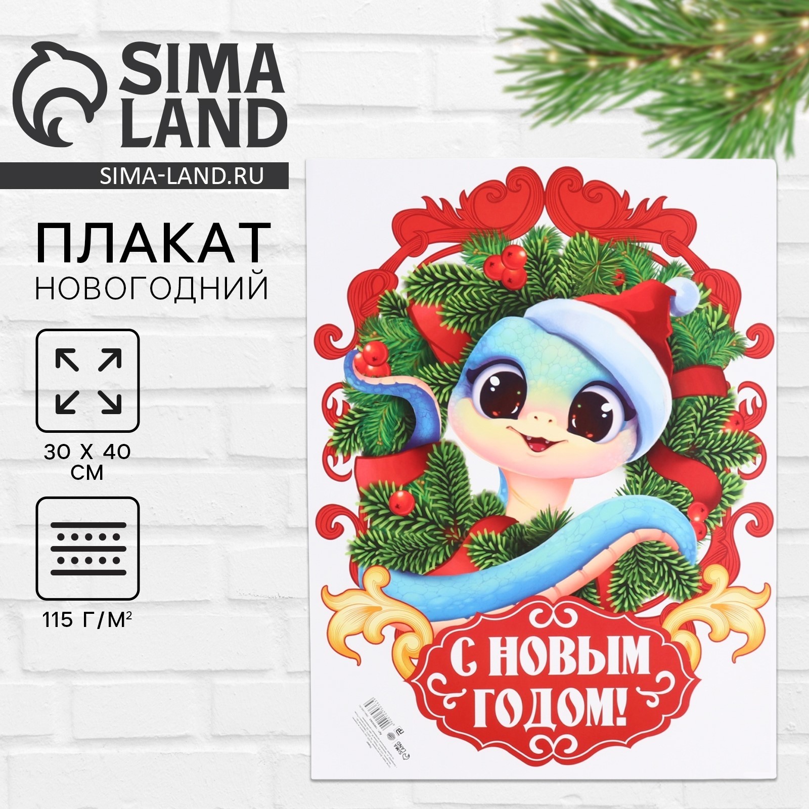 Плакат «с новым годом», 30 40 см. Набор:Нет|Символ года:Нет|Тематика праздника:Новый год|Материал:Картон|Страна:Россия