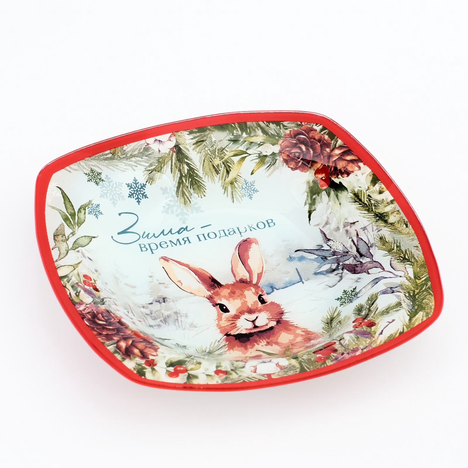 Новый год. тарелка стеклянная «зима-время подарков», 20 см