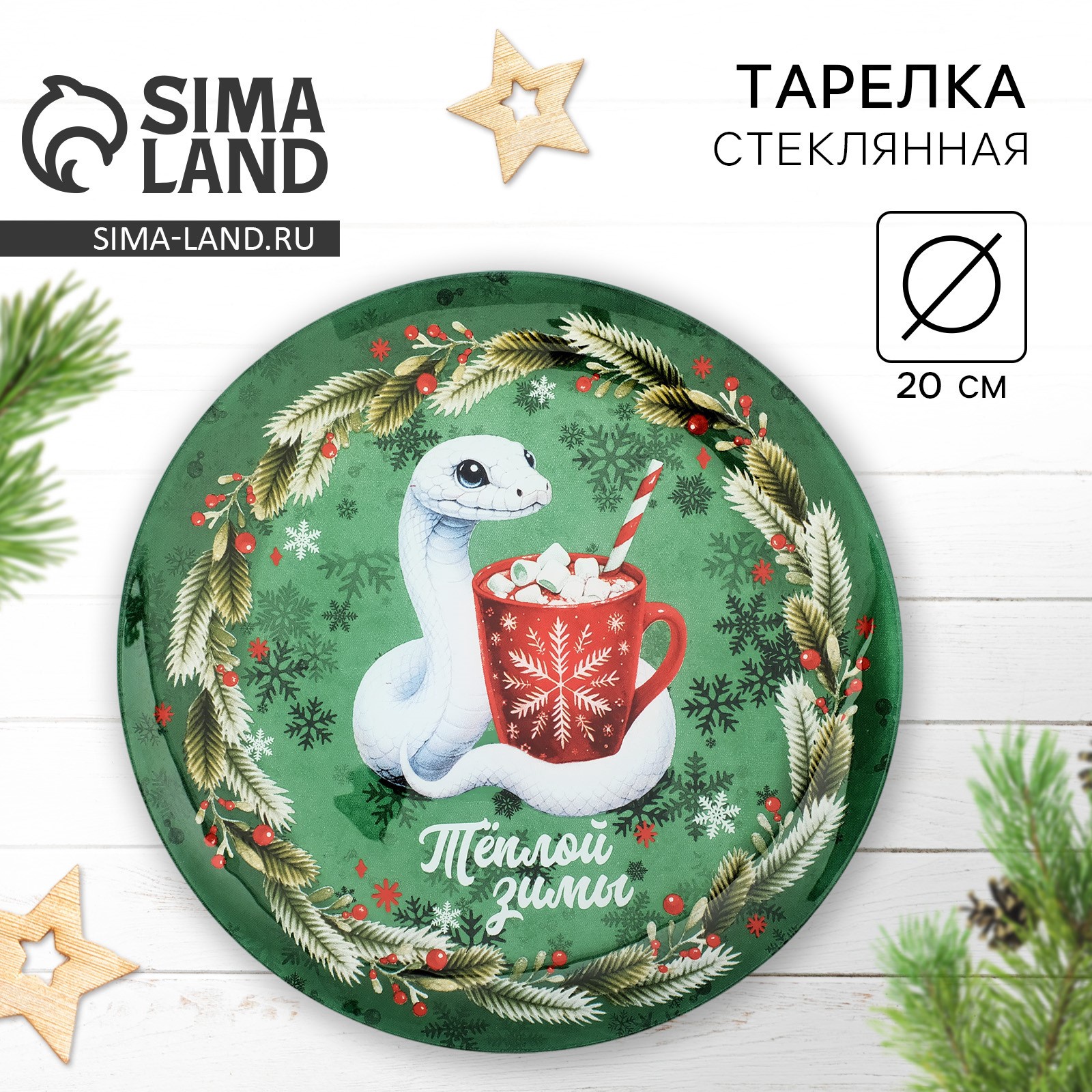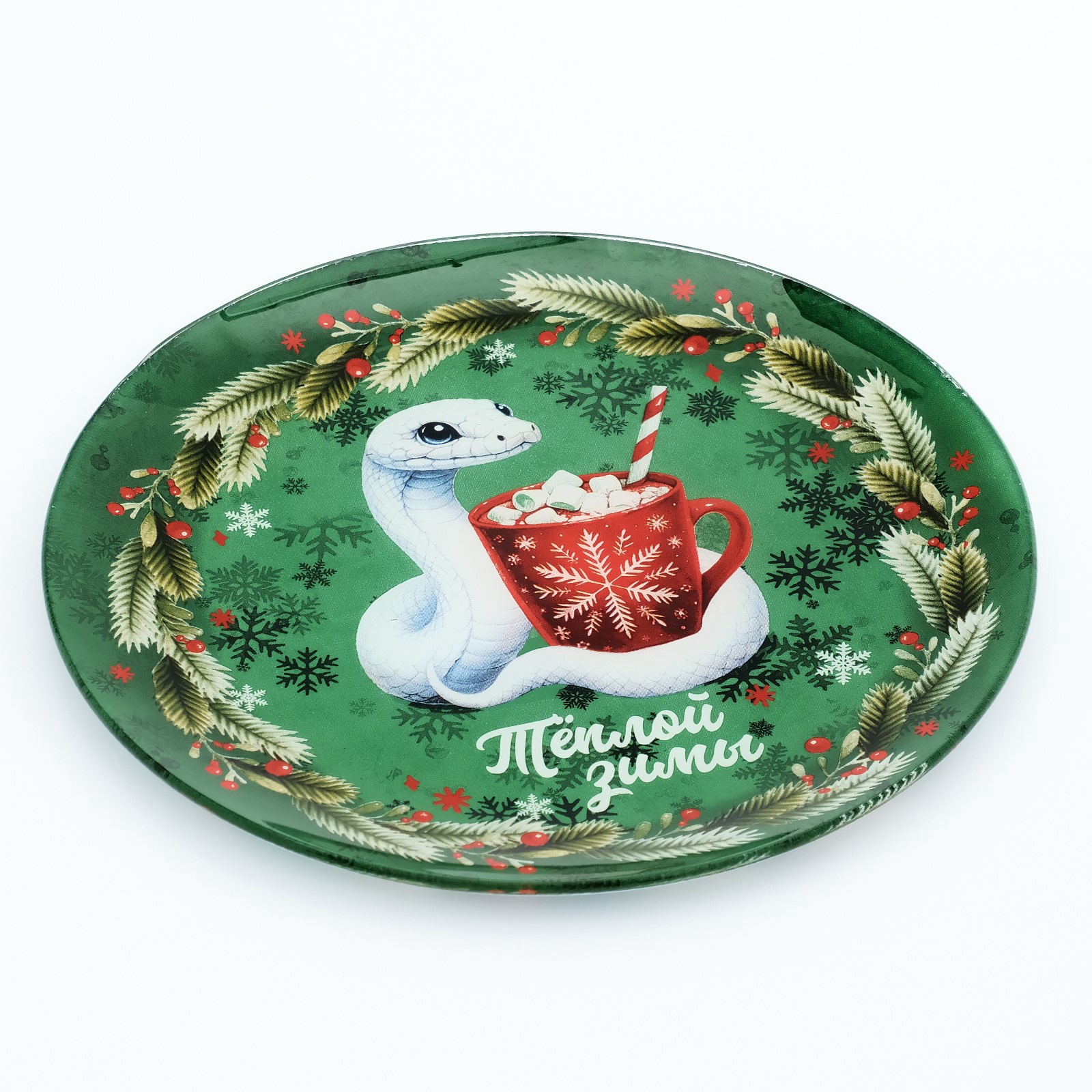 Новый год. тарелка стеклянная «теплой зимы», 20 см