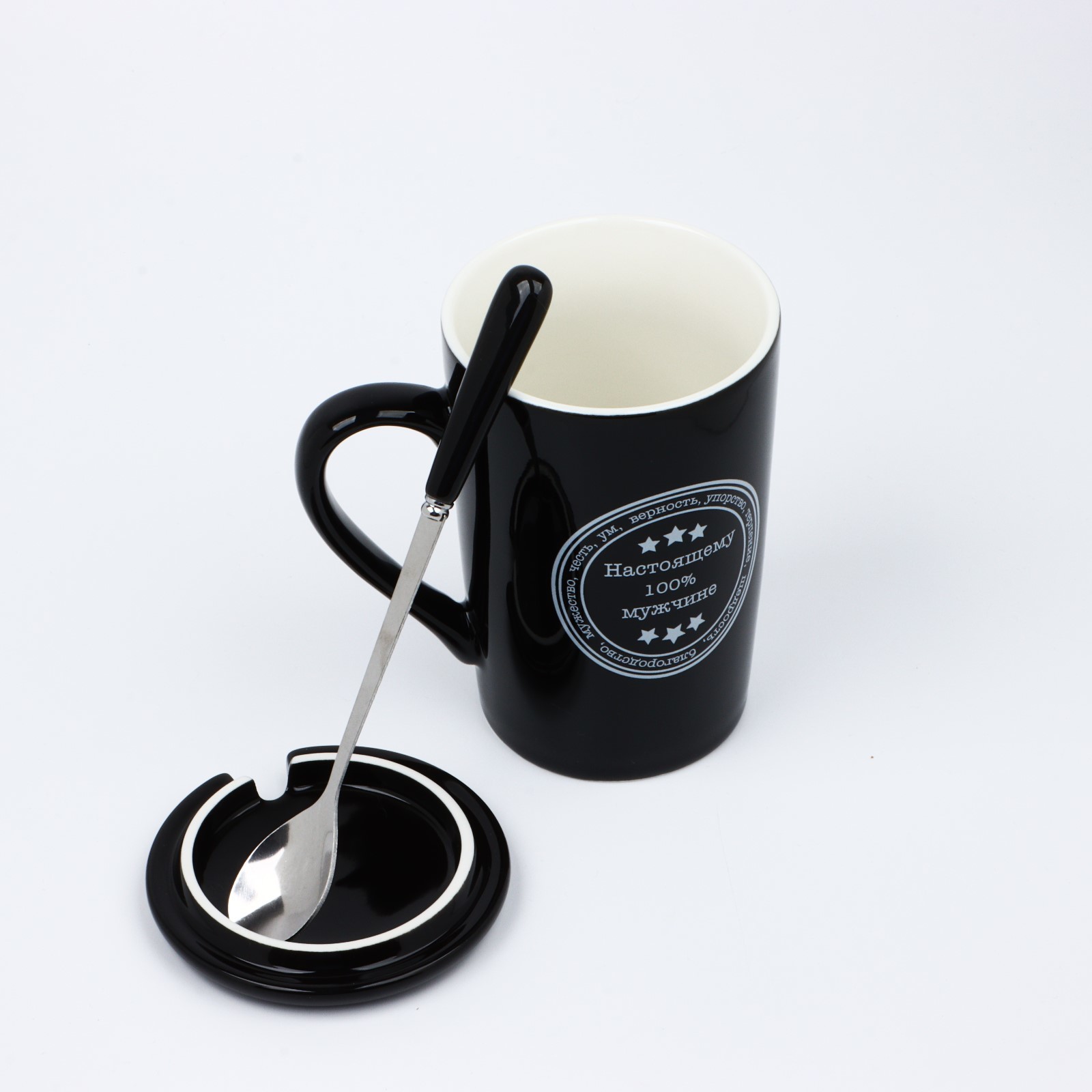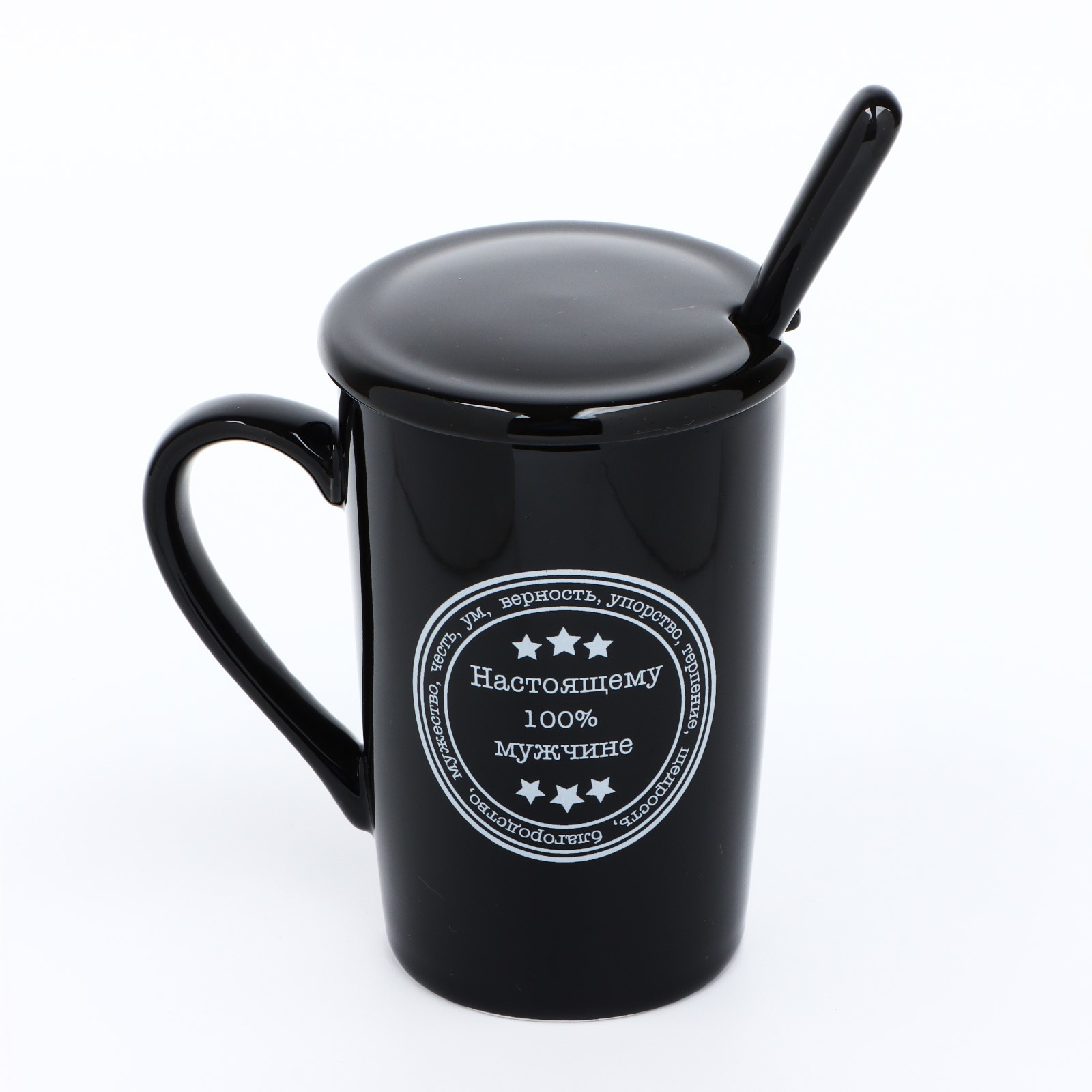 Кружка «настоящему 100% мужчине», 420 мл, с ложкой и крышкой