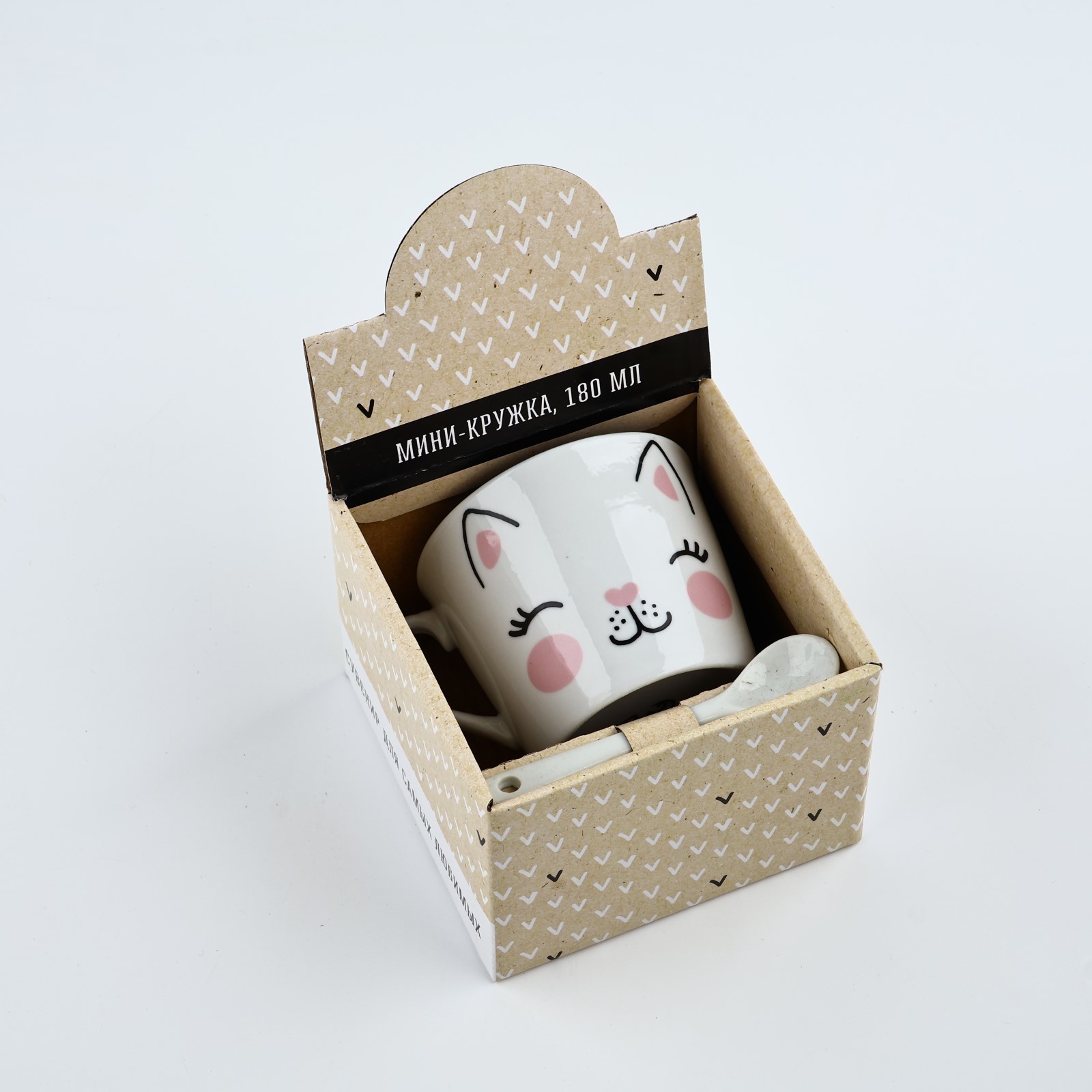 Подарочный набор «котик»: кружка 180 мл, ложка. Керамическая кружка с ложкой «Котик» объёмом 180 мл станет прекрасным дополнением вашего дома и отличным подарком. Преимущества керамической кружки: Экологичность: кружка изготовлена из высококачественной керамики, которая не содержит вредных веществ и безопасна для здоровья. Прочность: керамика обладает высокой прочностью и стойкостью к царапинам, поэтому кружка прослужит вам долгое время. Удобство: в комплекте с чашкой находится ложка. Сохранение температуры: керамика хорошо сохраняет тепло, поэтому напиток в кружке будет горячим долгое время. Оригинальный дизайн: кружка украшена оригинальным дизайном, который впишется в любой интерьер. Универсальность: кружка подходит как для горячих, так и для холодных напитков, её можно использовать для подачи чая, кофе, молока или какао. Отличный подарок: керамическая кружка станет отличным подарком для друзей и родственников, которые ценят уют и комфорт. Цвет: Белый Для кого: Для женщины Для кого: Для девочки В наборе, шт.: 2 Объём, мл: 180 Тематика: Женская Вид упаковки: Подарочная коробка Адресат: Без адресата Материал: Керамика Дополнительный аксессуар: Ложка Составляющие набора: Кружка Составляющие набора: Ложка Возраст: Для взрослых Можно мыть в посудомоечной машине: Да Можно использовать в СВЧ-печи: Да Текстура: Гладкая Особенности: Без особенностей Матовая поверхность: Нет Тематика подарка: Посуда  развернуть описание ▼