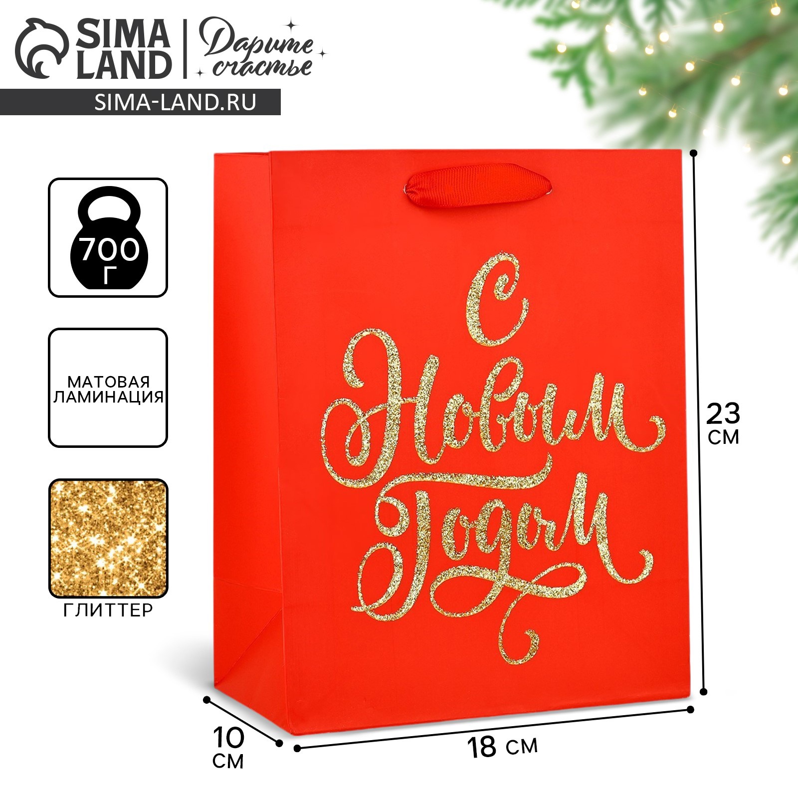 Пакет подарочный новогодний ламинированный «с новым годом», глиттер, ms 18 х 23 х 10 см. Цвет:Красный|Для кого:Унисекс|Плотность, г/м :190|Тематика:Новогодняя|Символ года:Нет|Тематика праздника:Новый год|Отделка пакета:Глиттер|Вид ручки:Ручка-лента|Страна:Китай  развернуть описание ▼