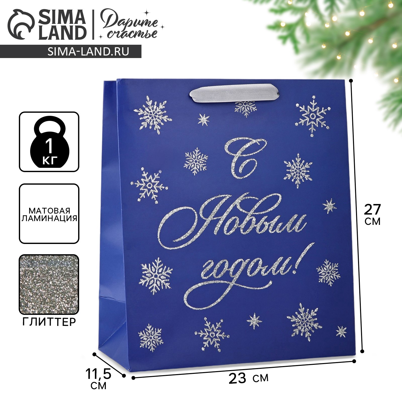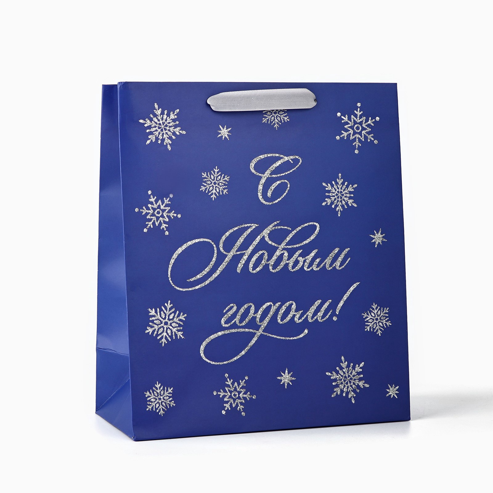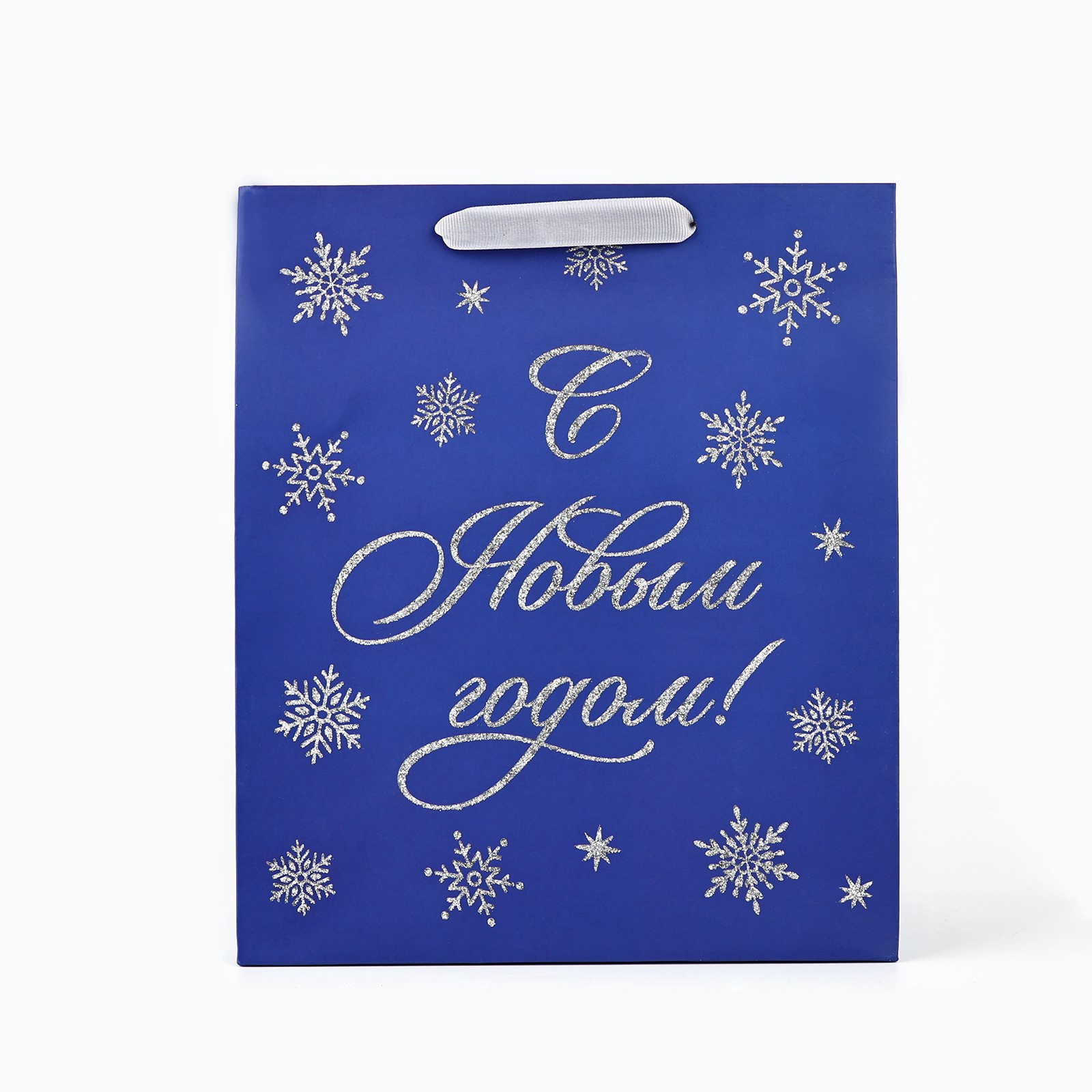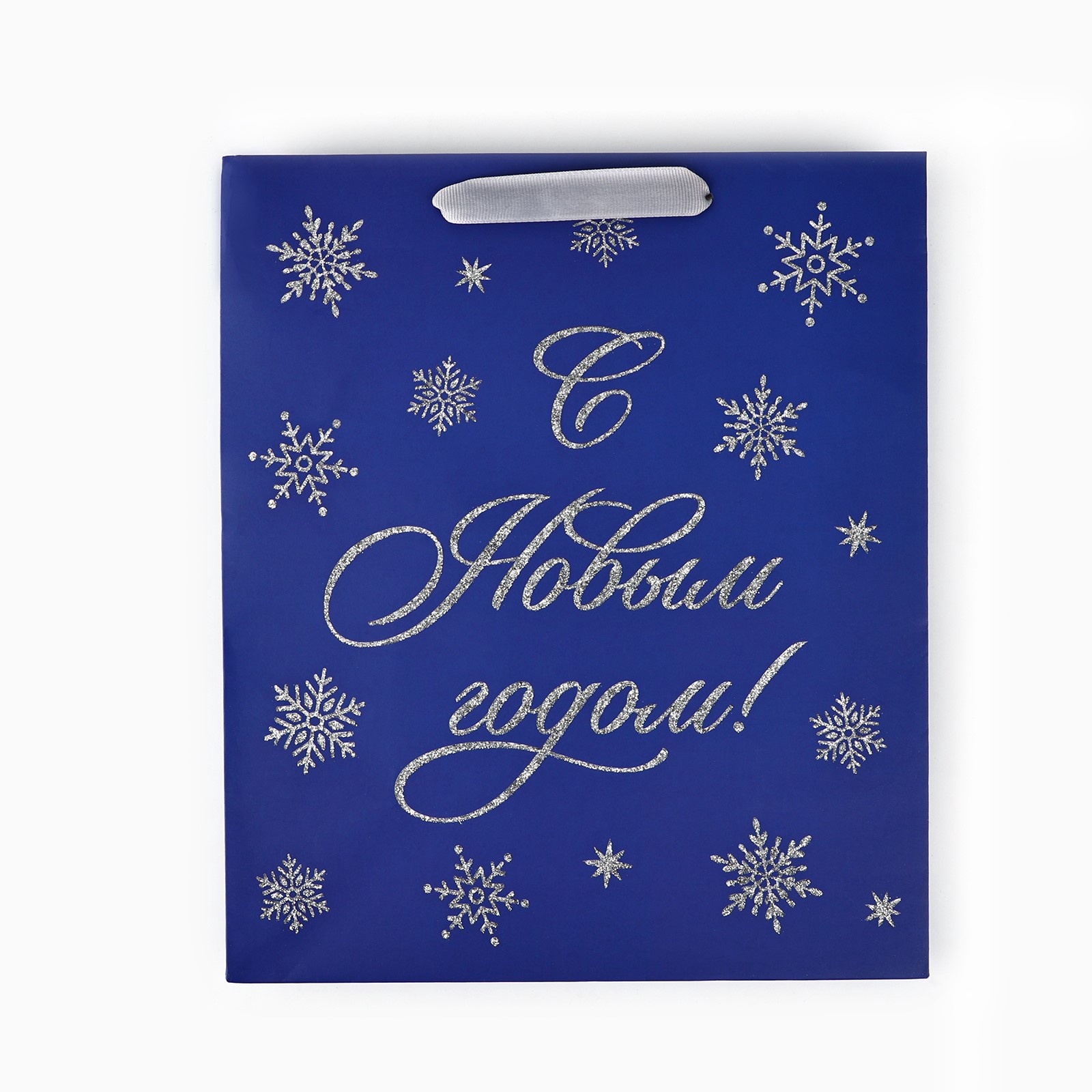 Пакет подарочный новогодний ламинированный «с новым годом», глиттер, Ml 23 х 27 х 11.5 см