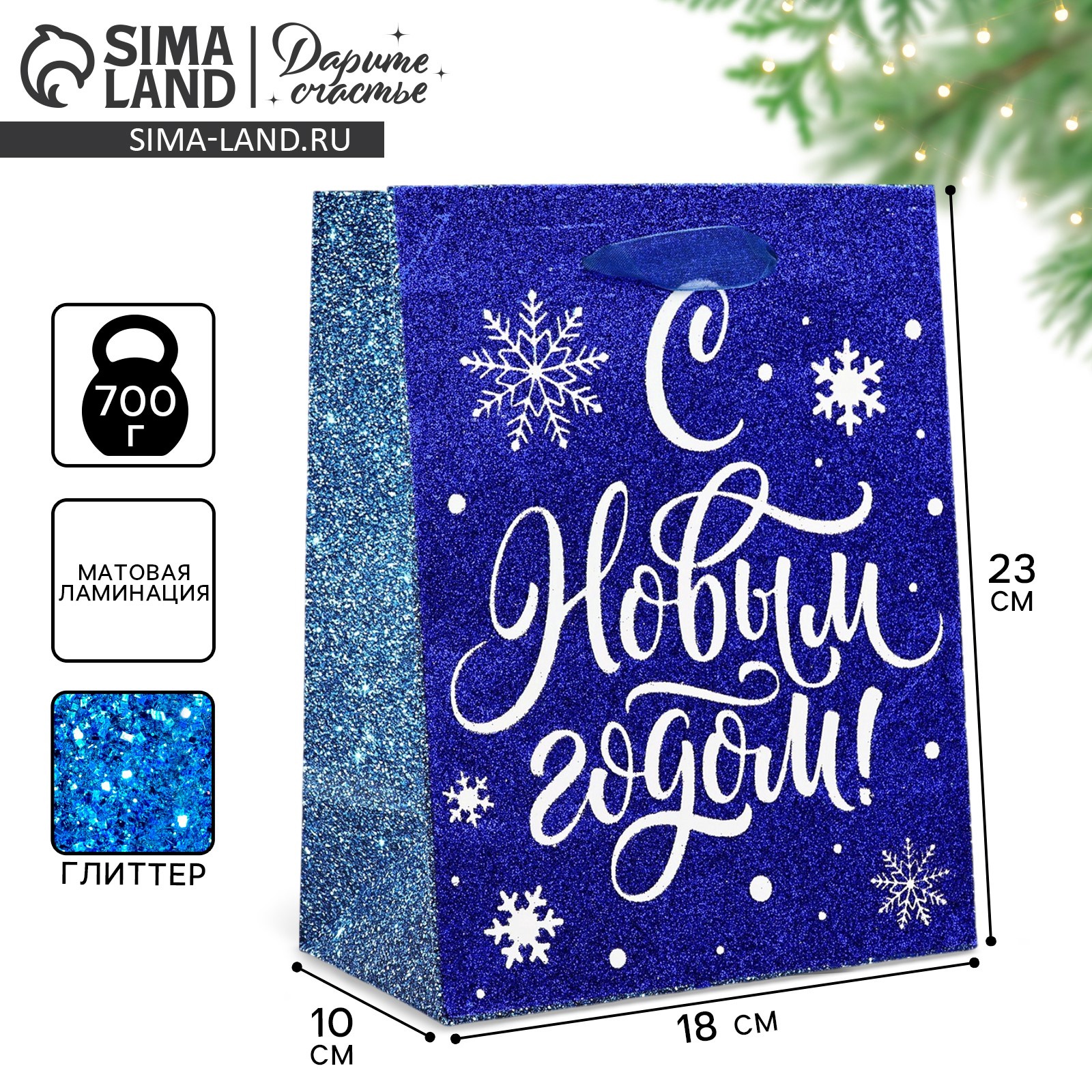 Пакет подарочный новогодний ламинированный «с новым годом», глиттер, ms, 18 х 23 х 10 см. Цвет:Синий|Для кого:Унисекс|Плотность, г/м :190|Тематика:Новогодняя|Символ года:Нет|Тематика праздника:Новый год|Отделка пакета:Глиттер|Вид ручки:Ручка-лента|Страна:Китай  развернуть описание ▼