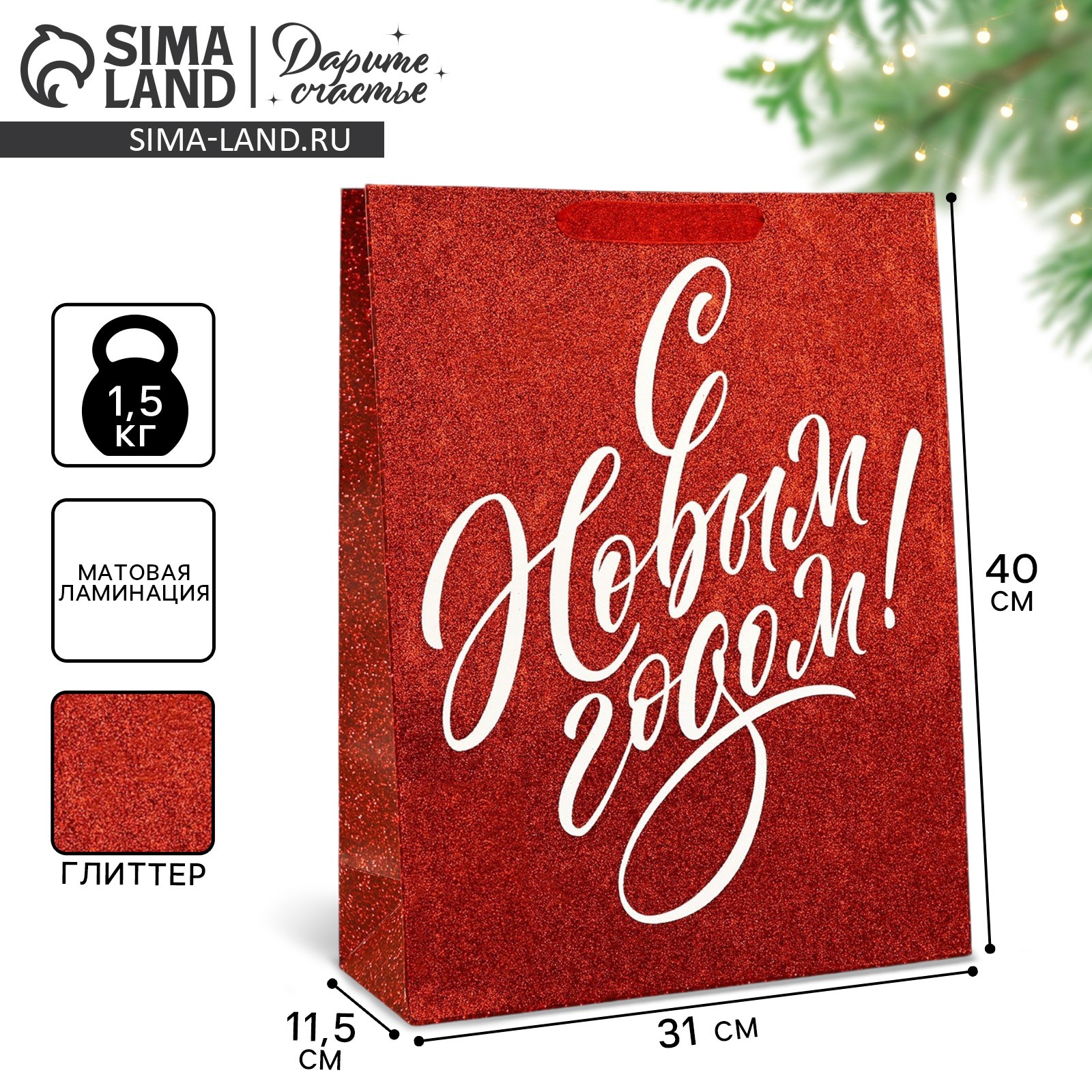 Пакет подарочный новогодний ламинированный «с новым годом», глиттер, L 31 х 40 х 11.5 см