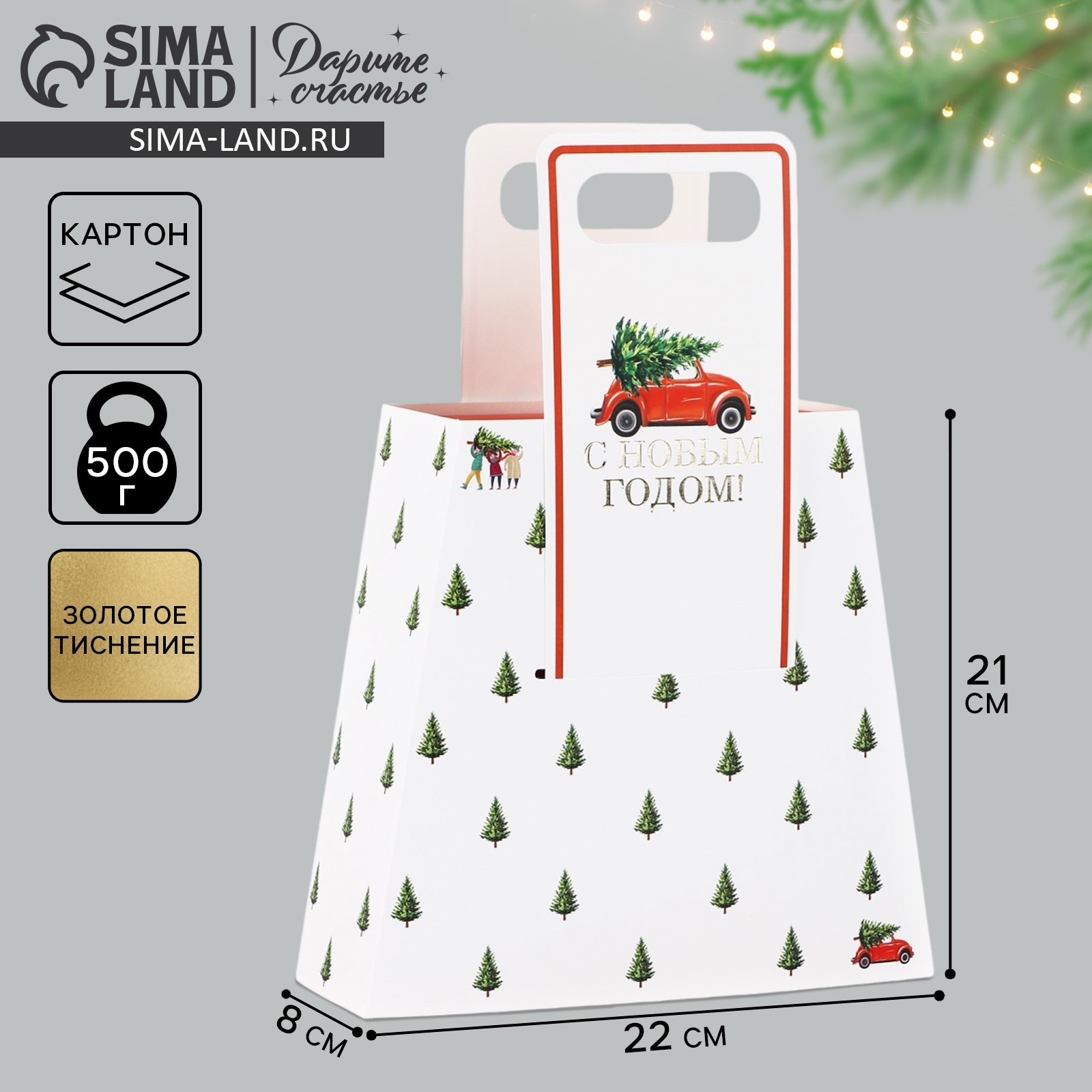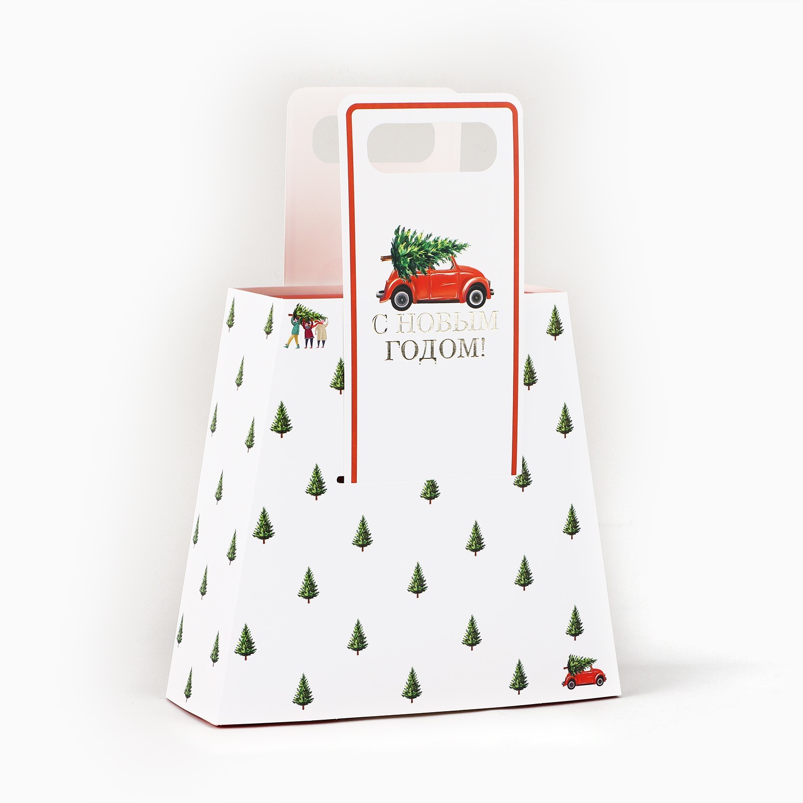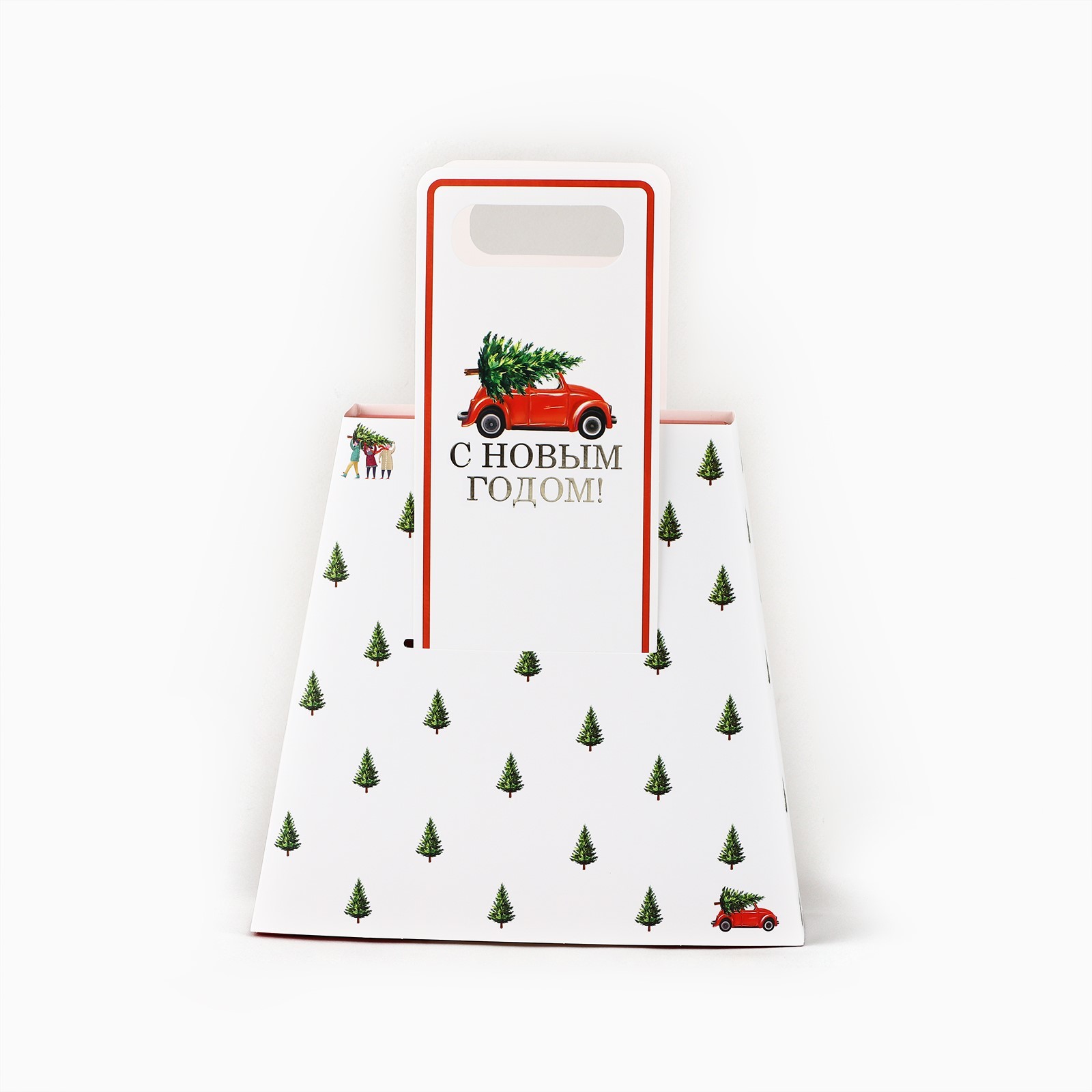 Коробка новогодняя складная с ручками «с новым годом!» 23 х 8 х 32 см. Цвет:Белый|Форма:Трапеция|Плотность, г/м :250|Длина, см:22|Ширина, см:8|Высота, см:21|Тематика:Новогодняя|Символ года:Нет|Тематика праздника:Новый год|Материал:Картон|Вид:Складные коробки|Размер:Большой (25-45 см)|Окошко:Нет|Крышка-дно:Нет|Страна:Китай  развернуть описание ▼