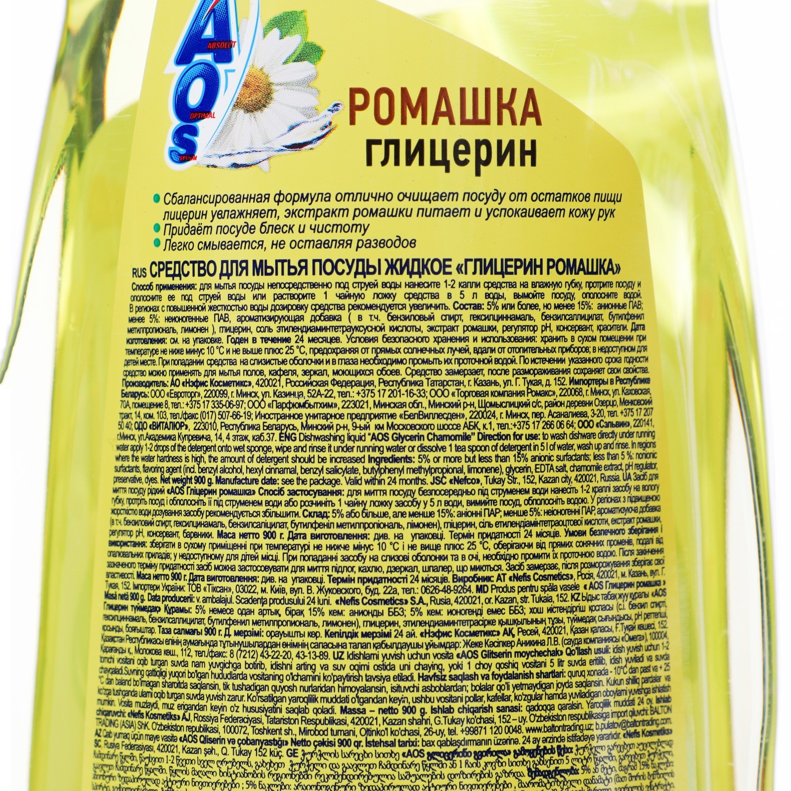 Средство для мытья посуды aos глицерин и ромашка, 900 гр.