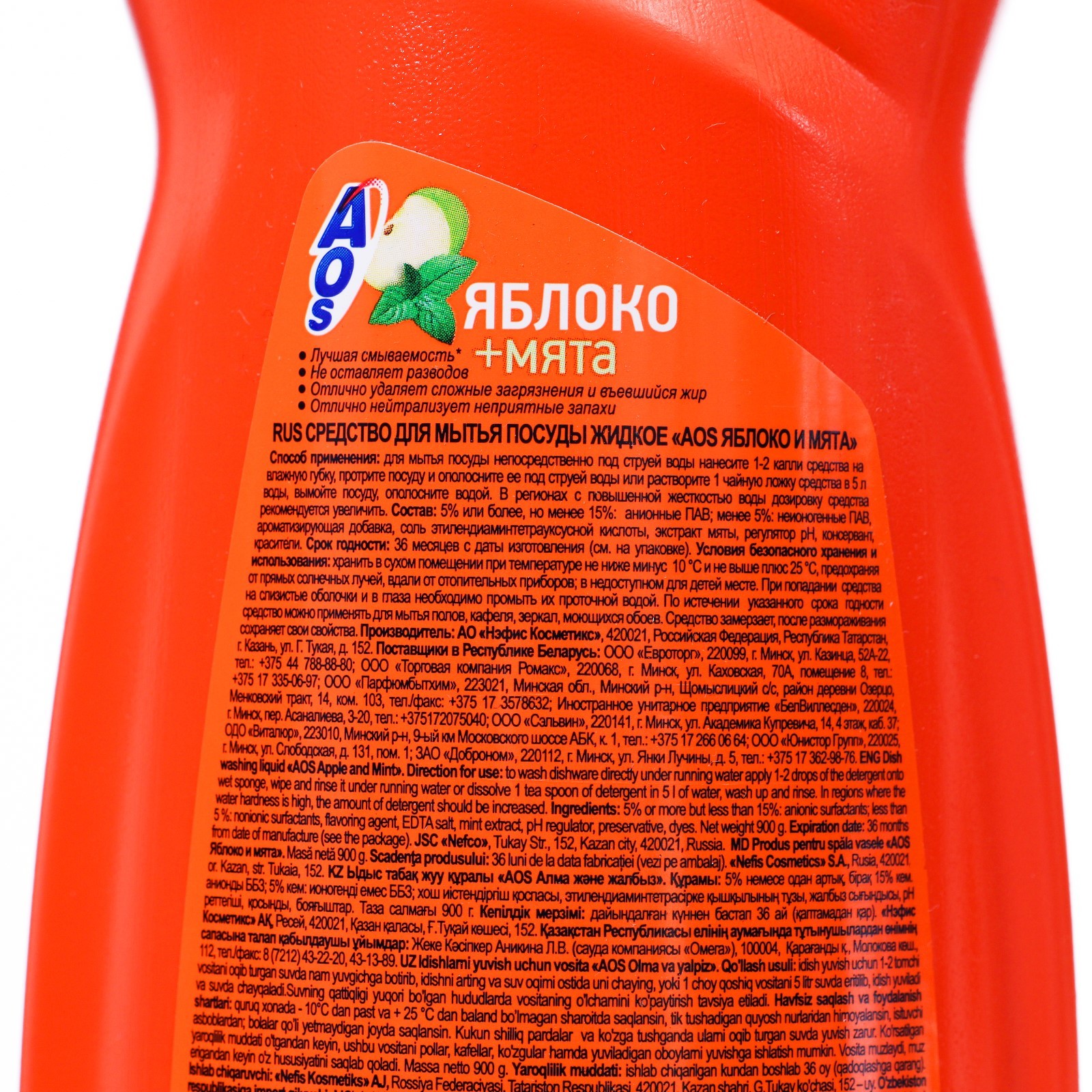 Средство для мытья посуды Aos яблоко и мята, 900 мл