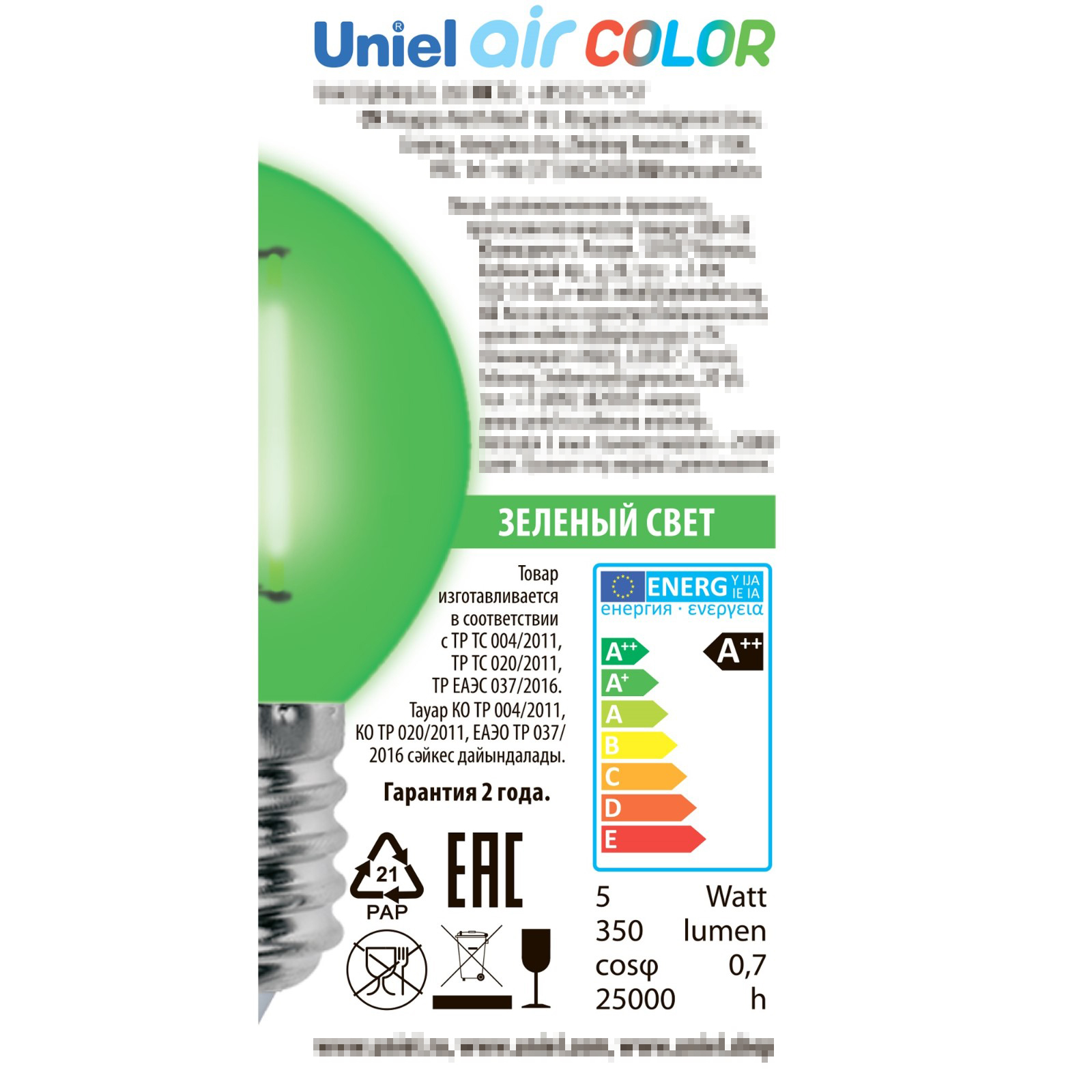 Лампа светодиодная Uniel, E27, 5 вт, свечение зелёное
