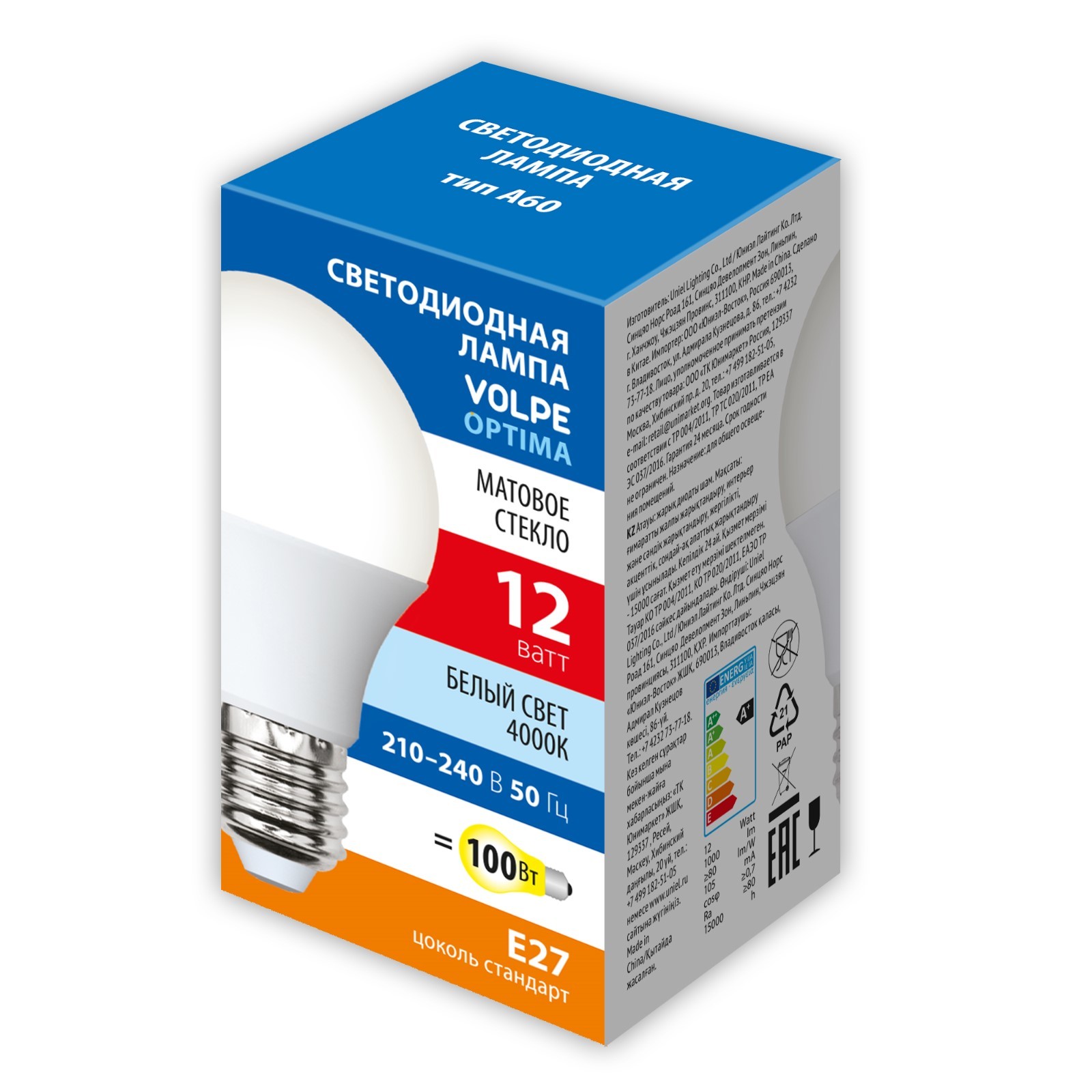 Лампа светодиодная Uniel, E27, 12 вт, 4000к, свечение белое