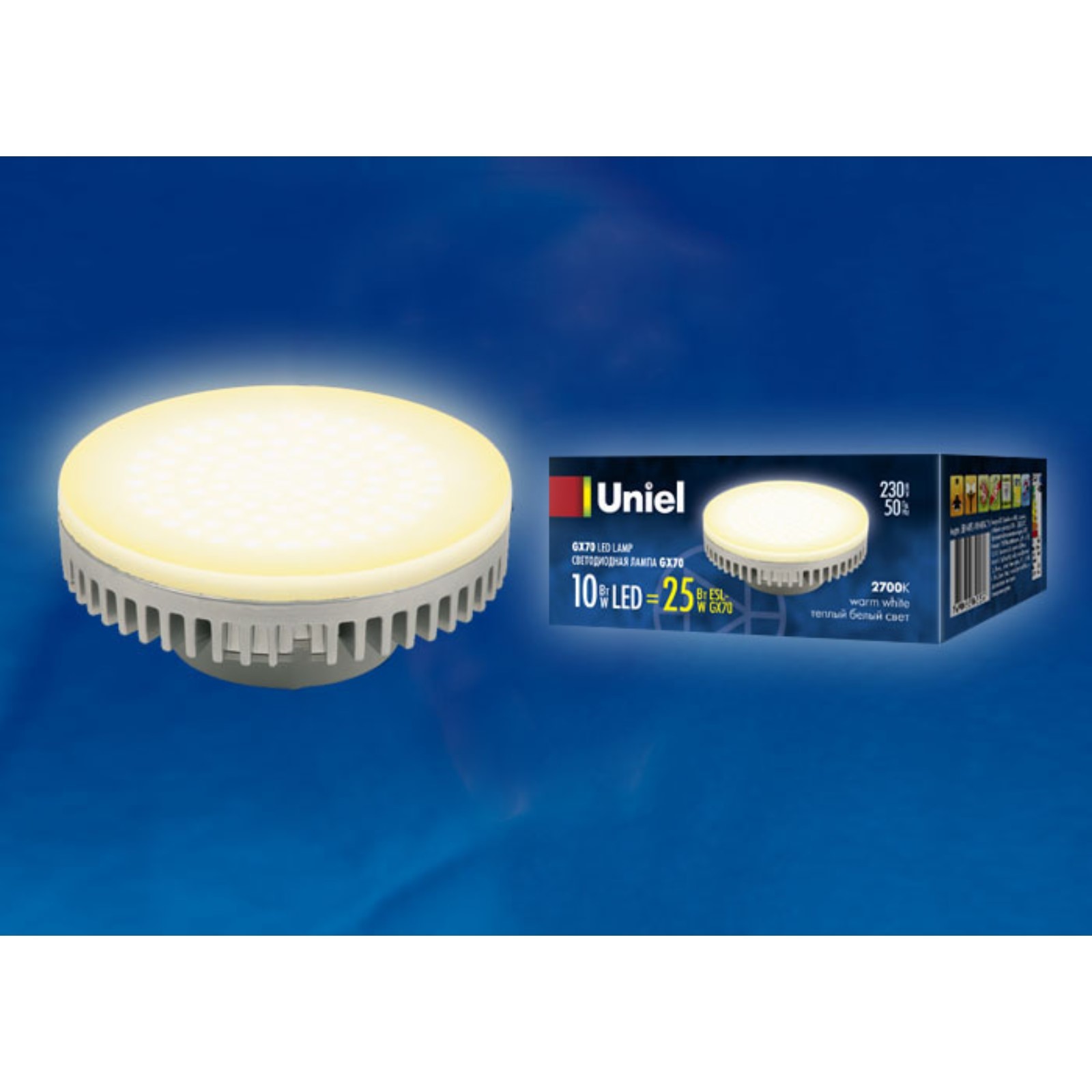 Лампа светодиодная Uniel, Gx70, 10 вт, свечение тёплое белое