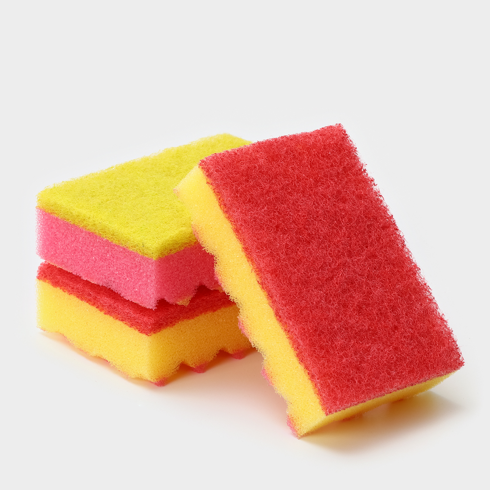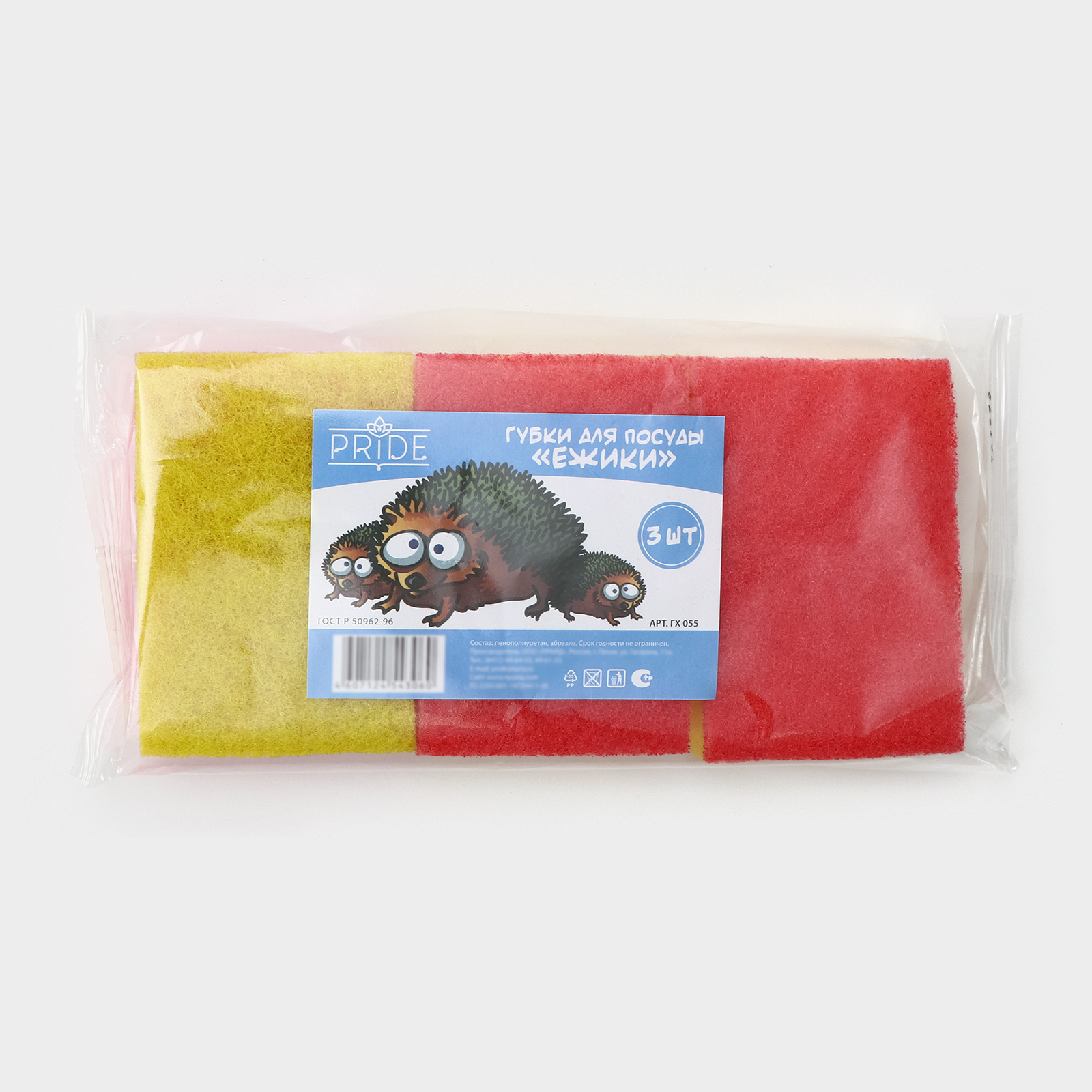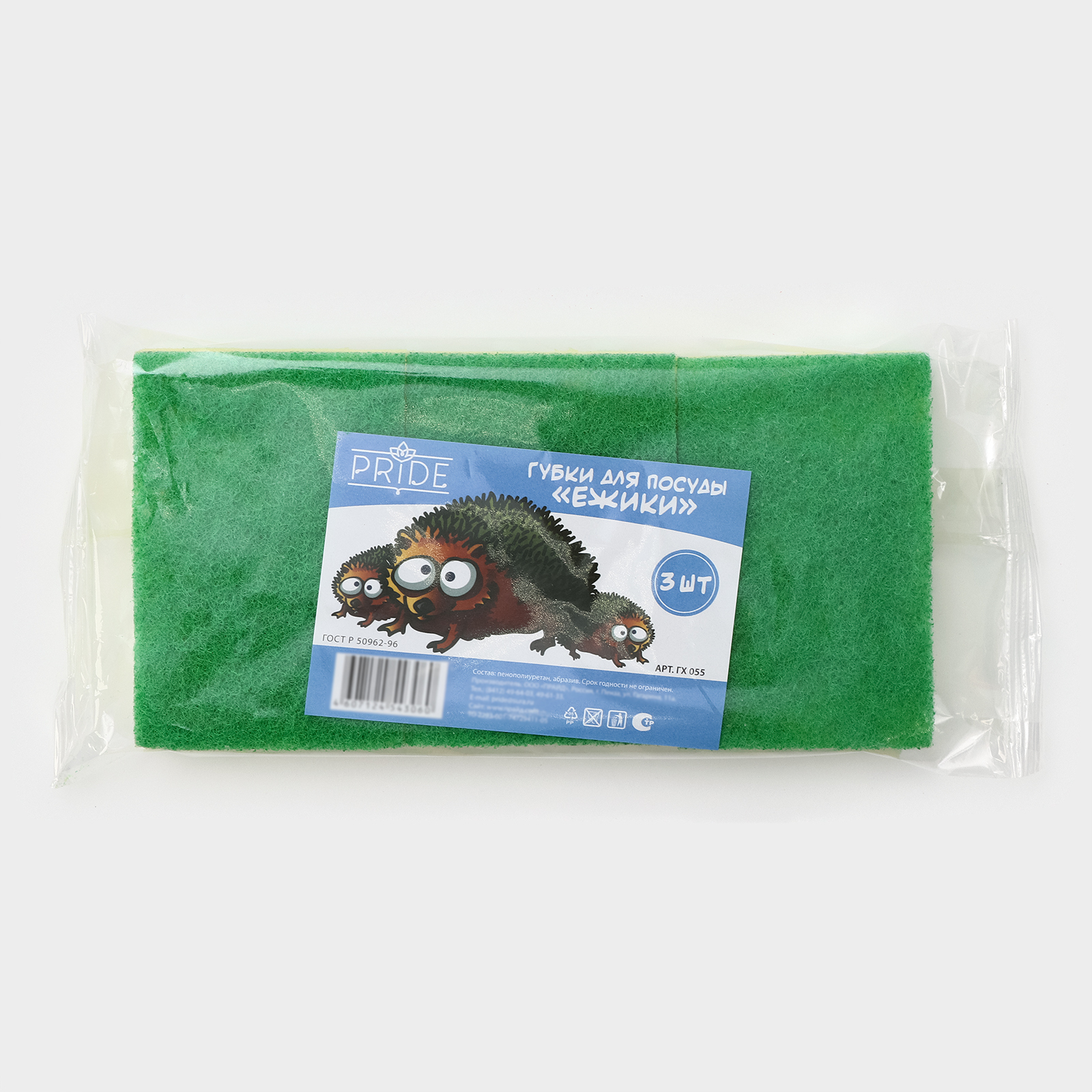 Губка для мытья посуды «pride», 3 шт, 100x65x30 мм, цвет микс