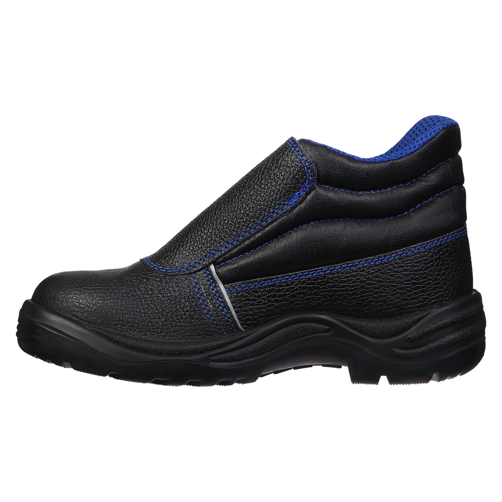 Ботинки из натуральной кожи Prosafe серии basic c защитным фронтальным клапаном, препятствующим попаданию искр, предназначены для защиты ног от общих производственных загрязнений в отапливаемых помещениях и на открытом воздухе в летний период. Текстильная подкладка Камбрель обеспечивает воздухопроницаемость и гигроскопичность. В модели предусмотрена текстильная съемная стелька. Светоотражающие элементы повышают видимость работников в темное время суток, а также на неосвещенной территории. Подошва - двухслойная, маслобензостойкая, литьевого метода крепления. Промежуточный слой изготовлен из ПУ с внутренней амортизирующей вставкой в пяточной части подошвы, способной гасить ударные нагрузки при ходьбе. Ходовой слой- износостойкая термостойкая нитрильная резина, способная защитить стопу от кратковременного контакта подошвы с нагретой поверхностью до 300°С. Металлический подносок обеспечивает защиту пальцев стопы от механических повреждений ударной прочностью до 200Дж.