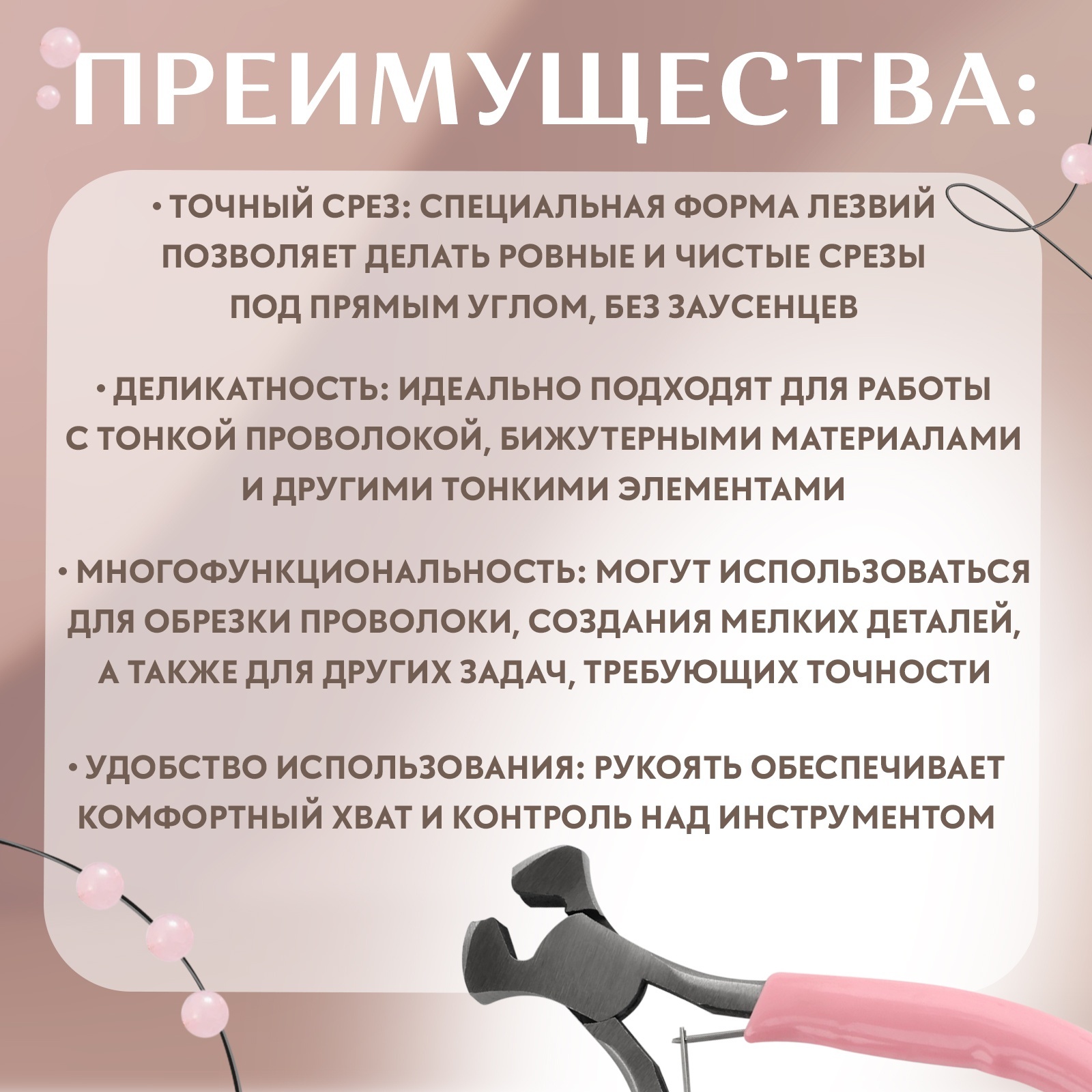 Кусачки торцевые, для рукоделия, 10.5 6.5 см, розовые