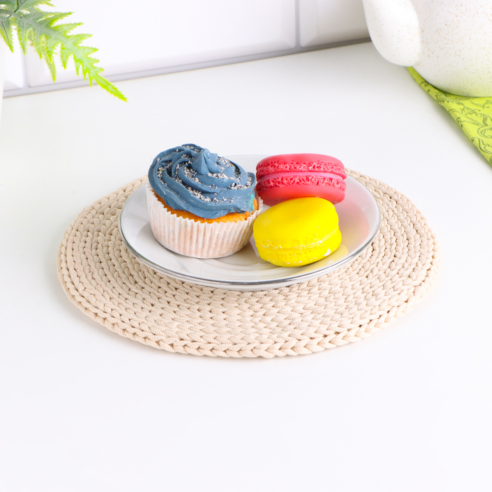 Салфетка, D = 20 см, полиэфирное волокно, бежевый