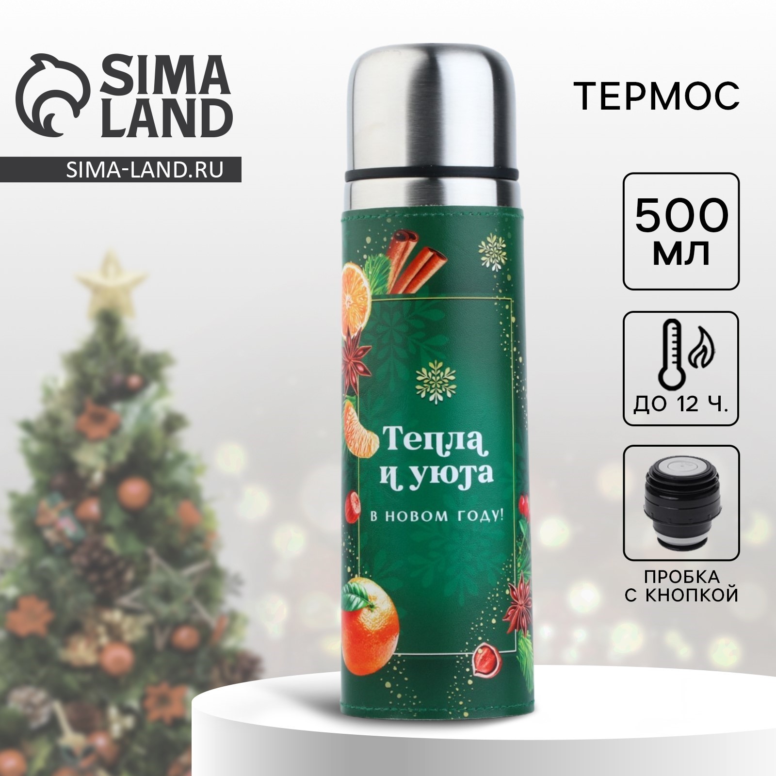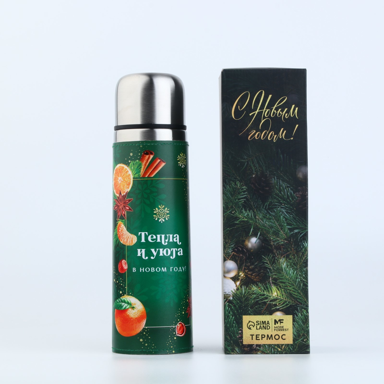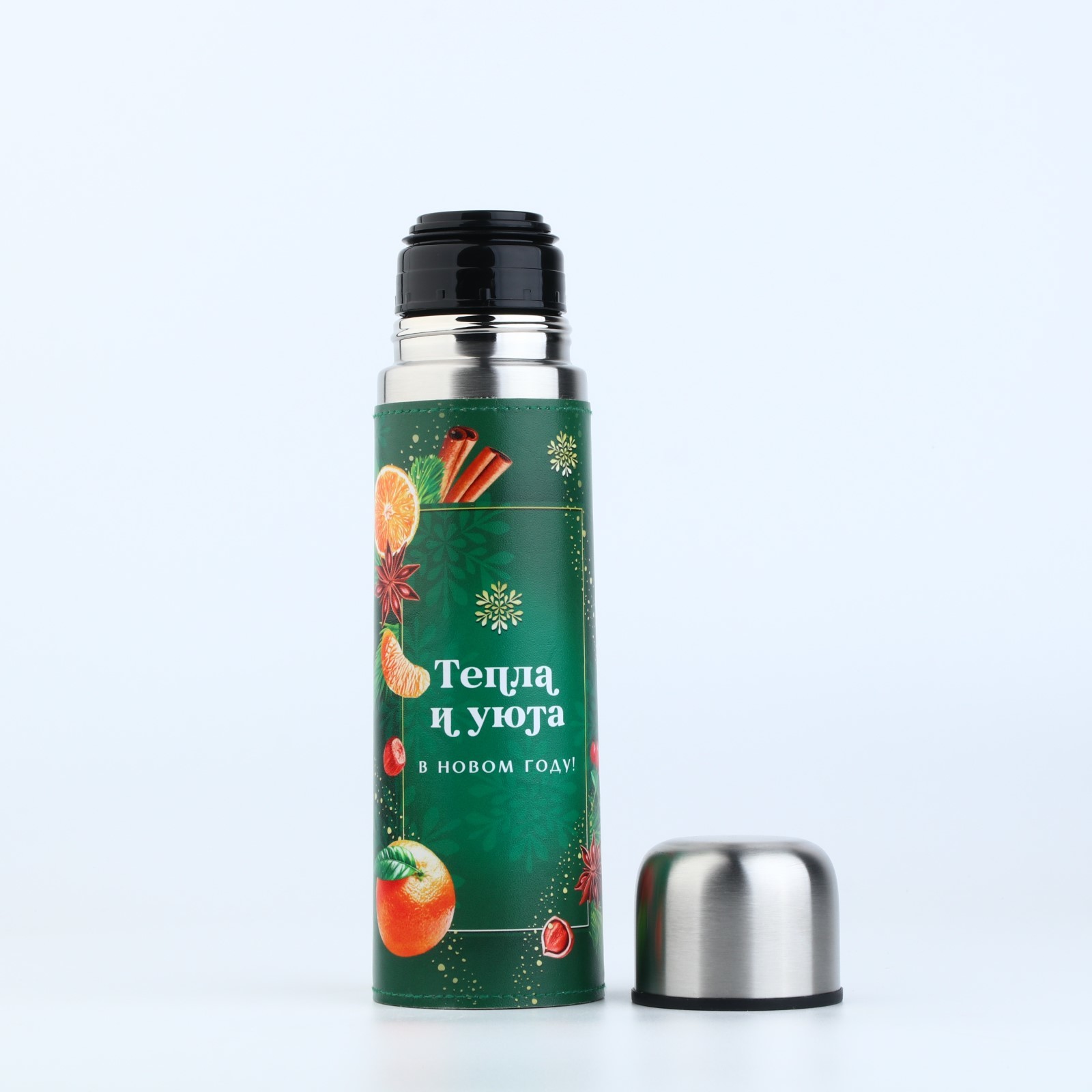Новый год. термос в кожзаме «тепла и уюта», 500 мл