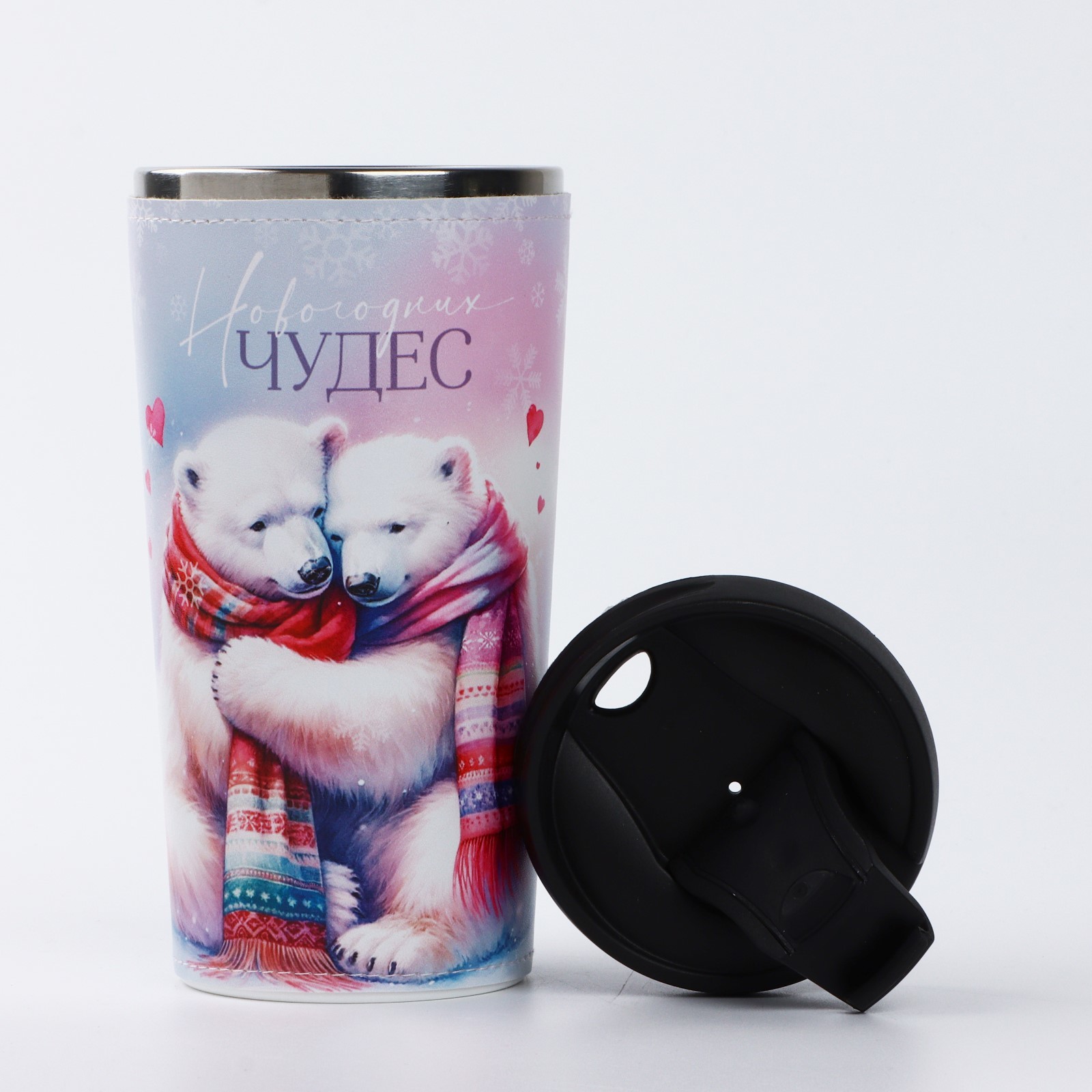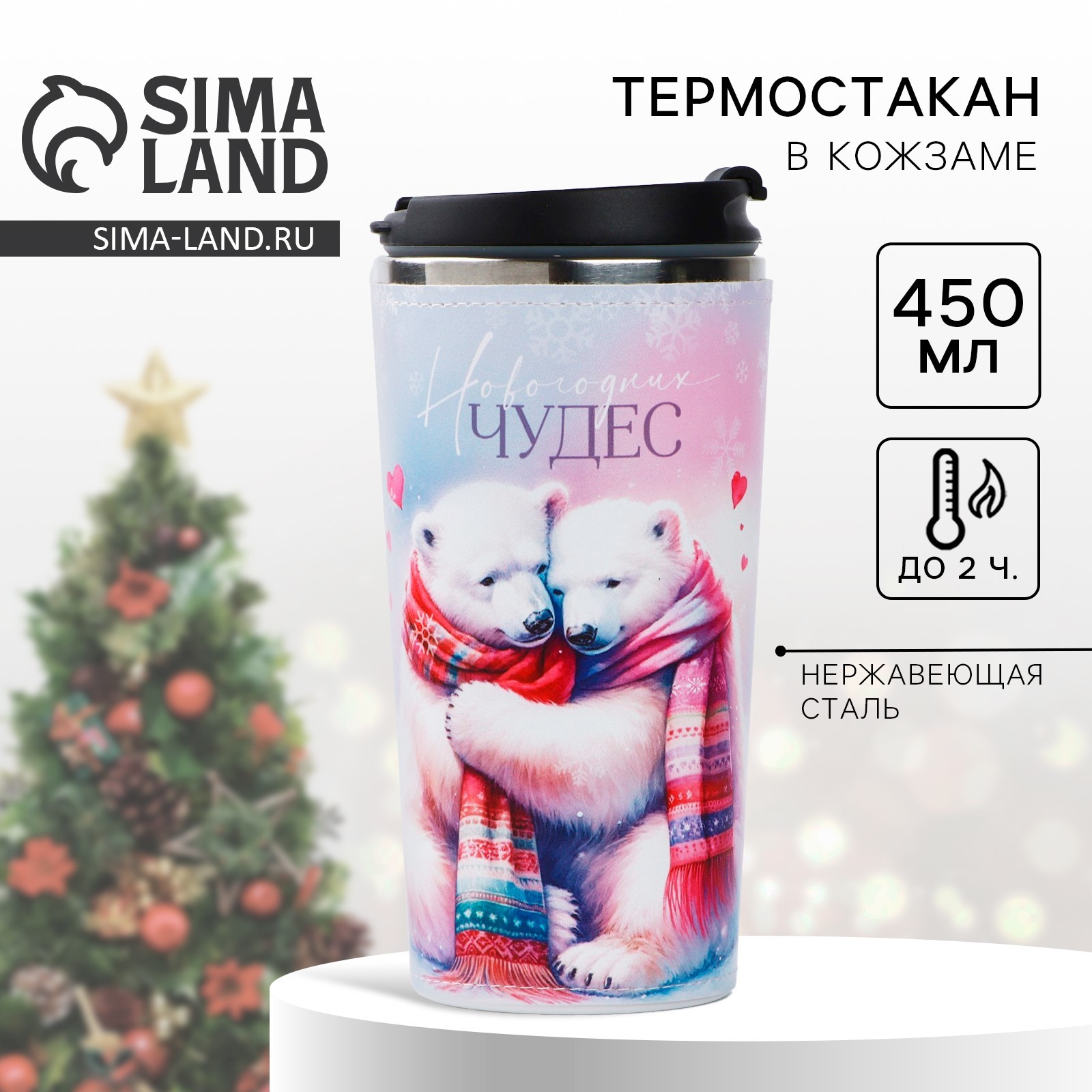 Новый год. термостакан в кожзаме «новогодних чудес», 450 мл
