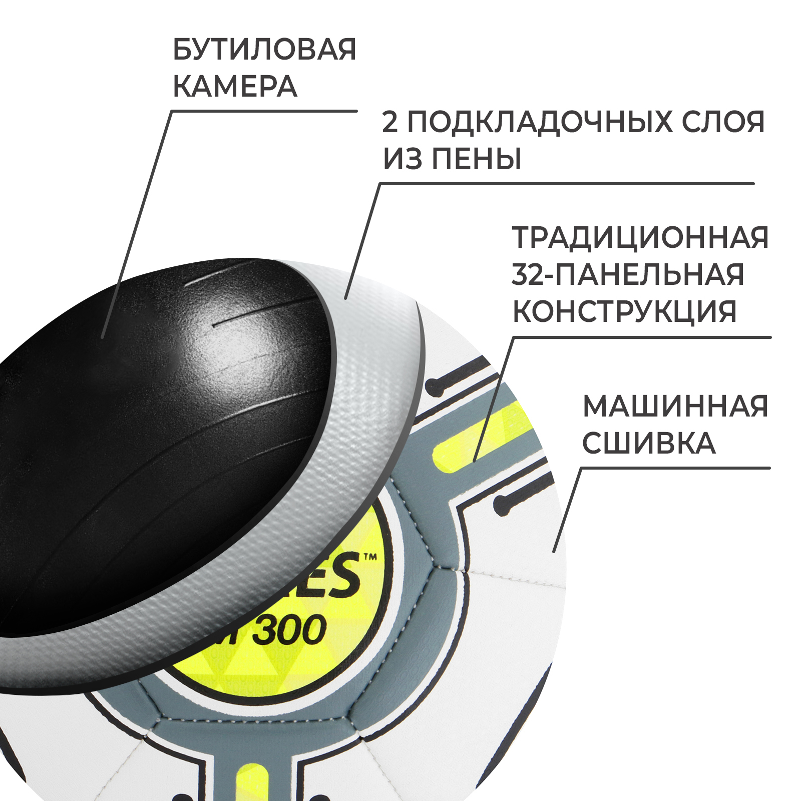 Футбольный мяч Torres Bm 300, F323653, машинная сшивка, 32 панели, р. 3, Tpu