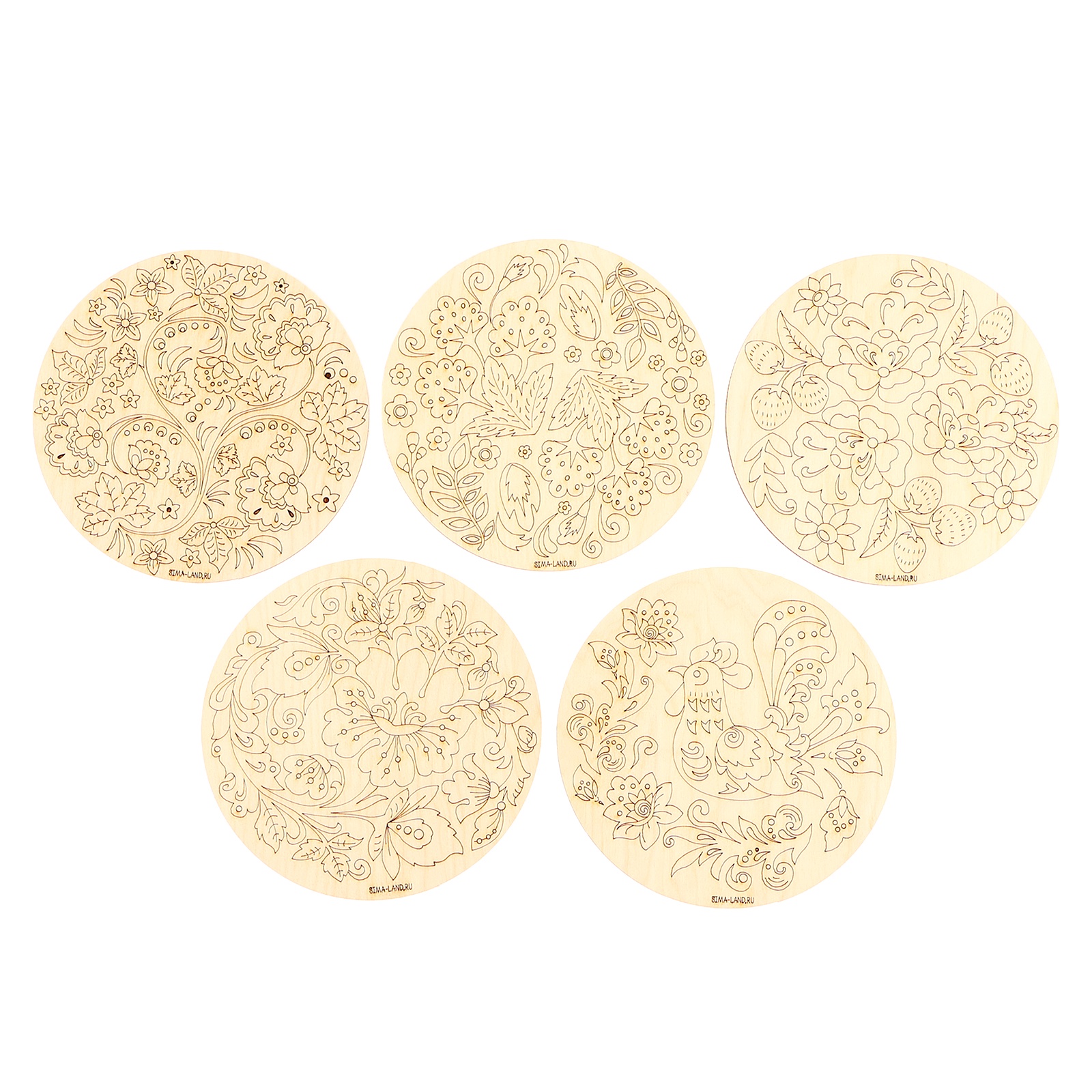 Заготовки для творчества. роспись по дереву «русские узоры», хохлома, 5 шт