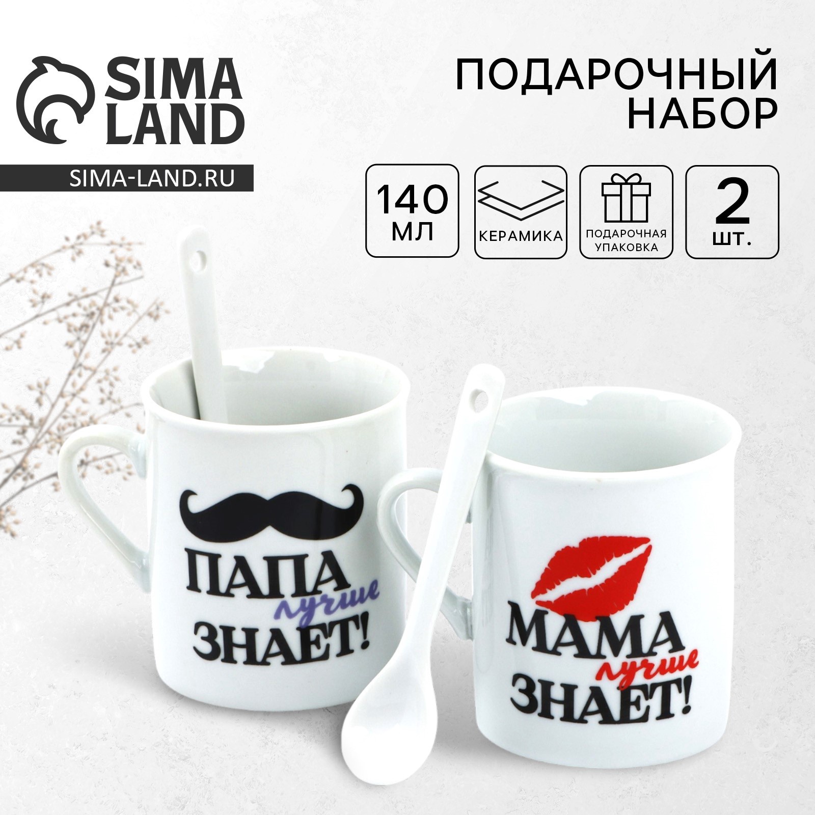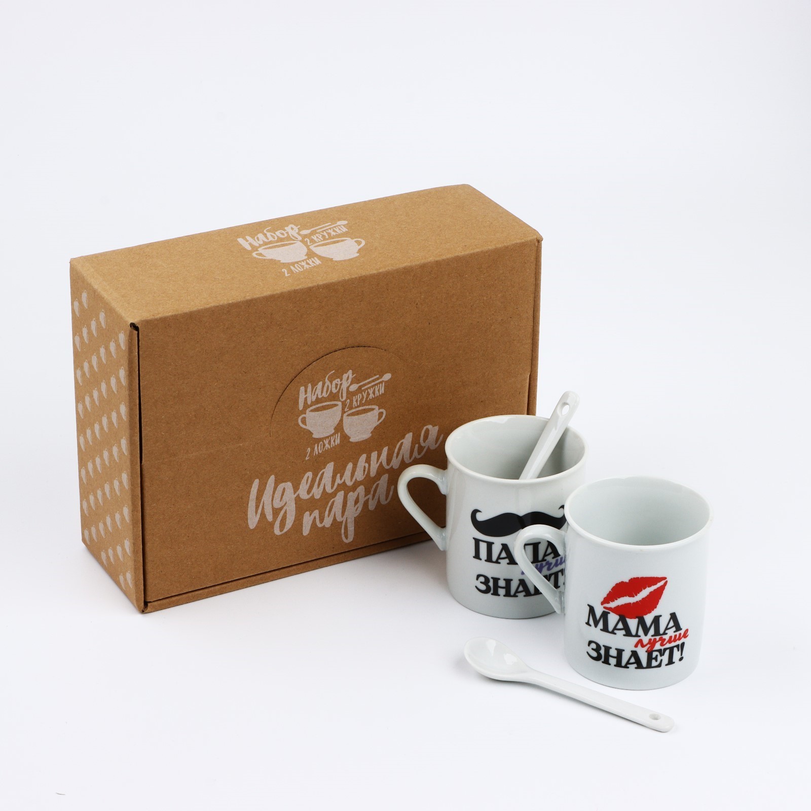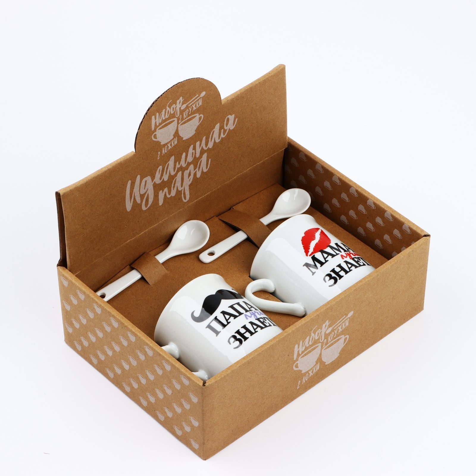 Подарочный набор «мама и папа»: кружка 140 мл 2 шт, ложка 2 шт