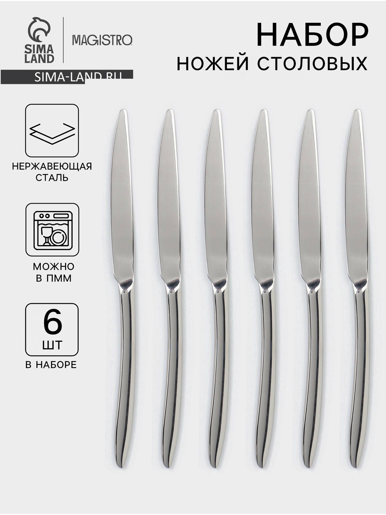 Набор столовых ножей Magistro Flow, 23.5 см, 6 шт., толщина 6 мм, нержавеющая сталь, серебристый