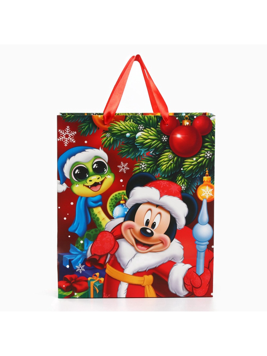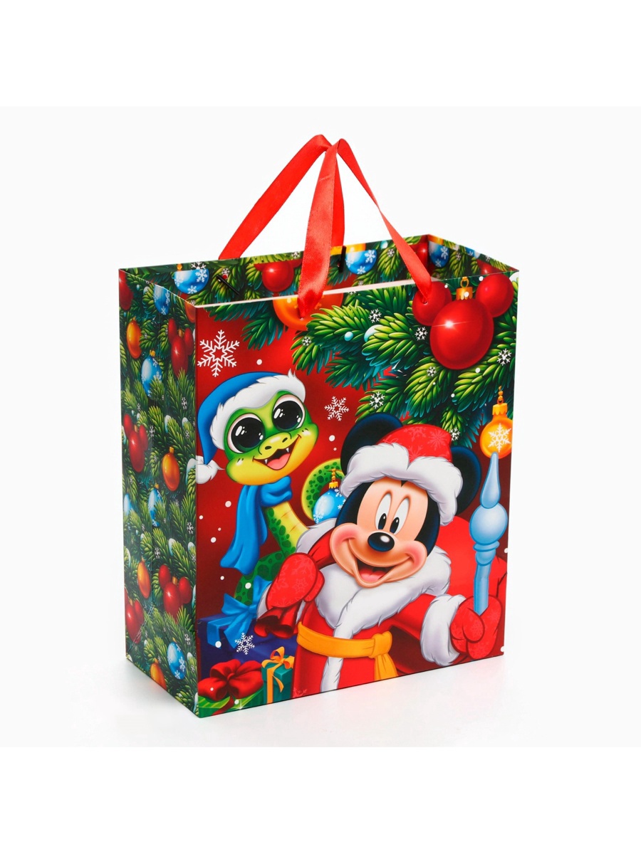 Пакет подарочный новогодний «с новым годом!» 23 х 27 х 11.5 см, упаковка, микки маус. Цвет:Красный|Для кого:Для мальчика|Для кого:Для девочки|Плотность, г/м :210|Допустимый вес вложения, г:2500|Тематика:Новогодняя|Символ года:Нет|Тематика праздника:Новый год|Материал:Картон|Отделка пакета:Ламинация|Вид ручки:Ручка-лента|Страна:Китай  развернуть описание ▼